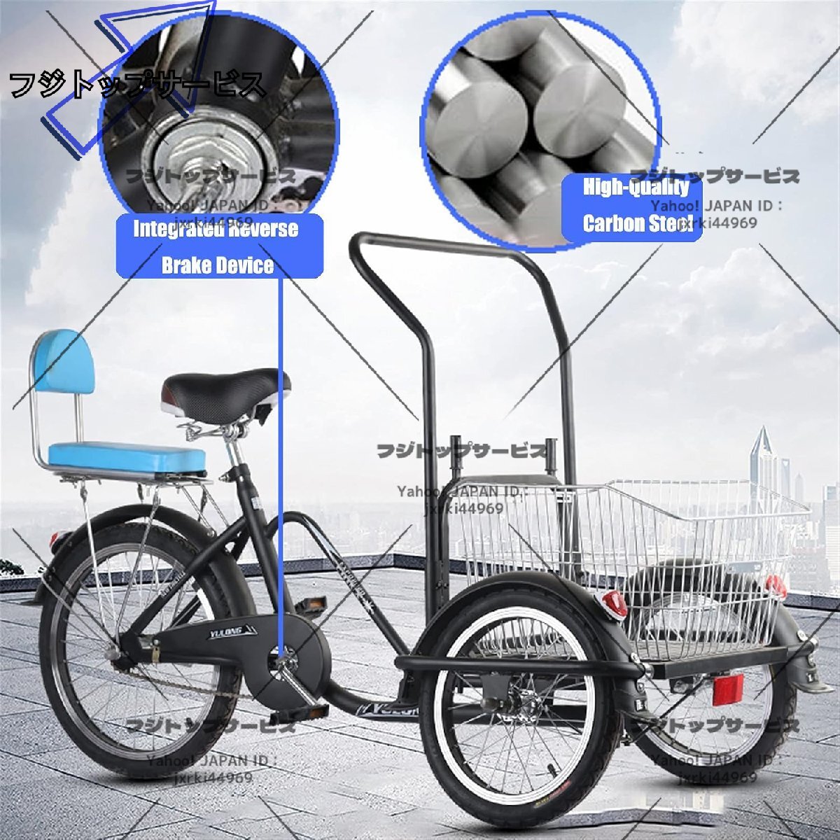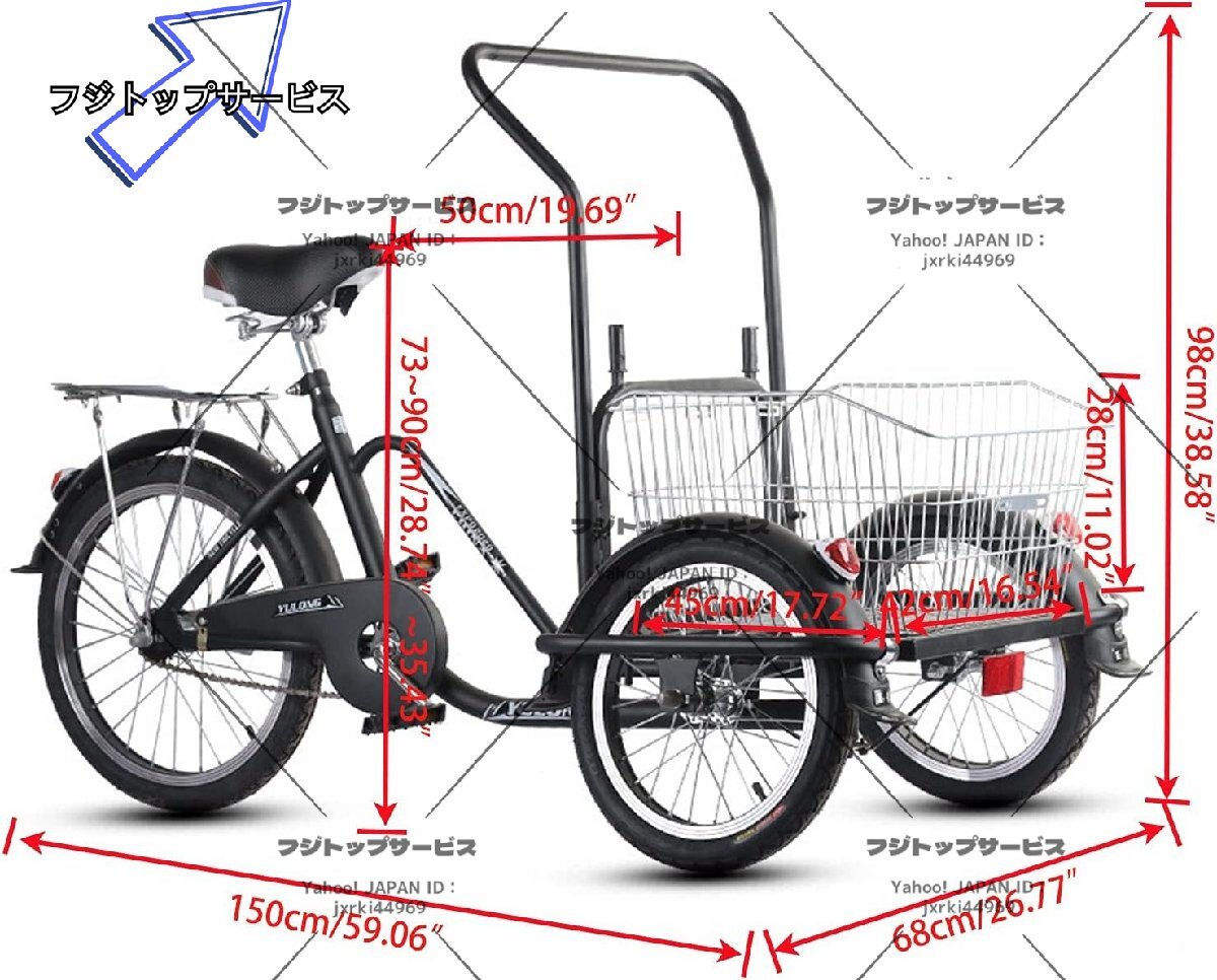 ★状態:新品未使用 商品名:3輪自転車、高齢の三輪車、大人の横断自転車、快適な自転車、快適な自転車、トライク、16-20インチのトリケホイール、貨物バスケット、調節可能なハンドル、最大荷重441LB 製品材質:この三輪自転車は高炭素鋼フレームを採用し、座席を高さで調整することができます。初心者と高齢者のために、安全率は高く、雨の中でも滑りやすくはありません。 三輪車の寸法:長さ150cm、幅68cm、前輪の直径40cm、後輪の直径50cm、ハンドルバーの高さ100 ~90cm、バスケットサイズ42x45x28cm、後部座席サイズ27x17cm。 強い携帯能力:三輪車は最大搬送力44の乗車に適しています1LB。後部座席は子供を収容することができます。 自転車は、両親と家族への最高の贈り物です。あなたの妻はそれを使って子供を拾い上げて落とすことができます。あなたの両親はあなたに同行し、あなたの愛をいたるところにいることができます。 注:商品を受け取った後、あなたは単にそれを組み立てるだけでよいですが、心配しないでください、それは非常に単純です、あなたが質問があるならいつでもいつでも連絡することができます。三輪車は大きな製品であるため、輸送中に製品はわずかに傷を付けられている可能性があります。気にしないでください。
