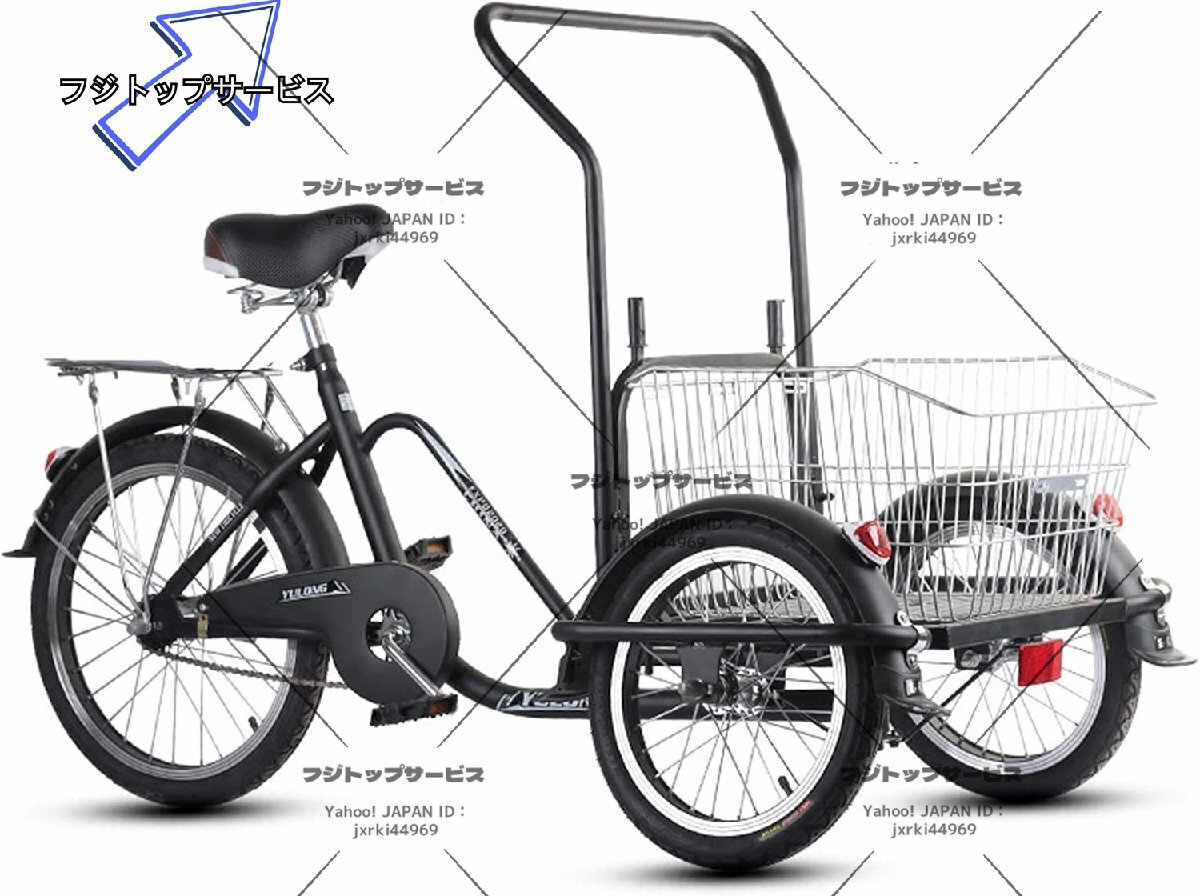 3輪自転車 快適な自転車 高齢の三輪車 大人用 貨物バスケット付き 調節可能なハンドルバー ブラック