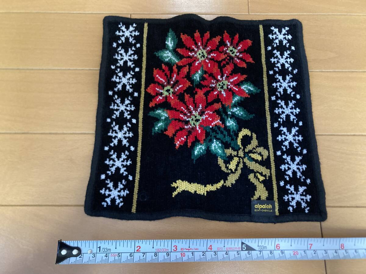 alpaloh(アルパロ)シェニール織りハンドタオルハンカチ/ECHT-CHENILLE/黒ベース花柄/日本製JAPAN/Hotmanホットマン/ブランド/当時物レトロ