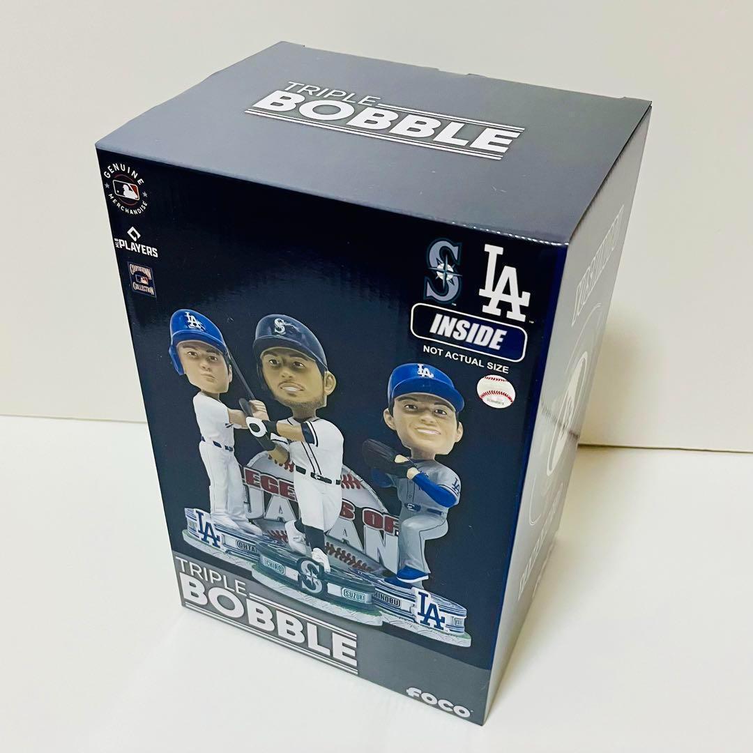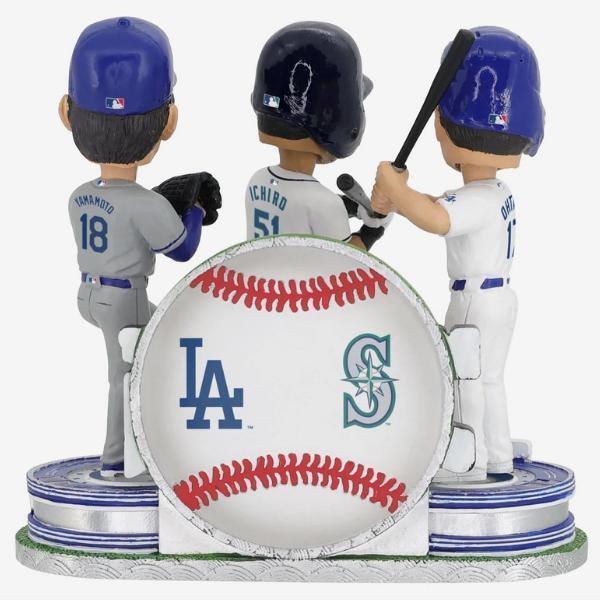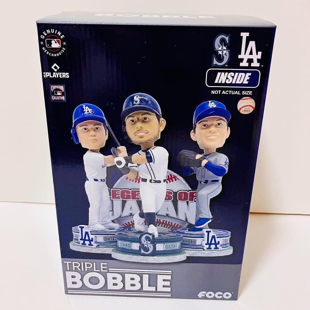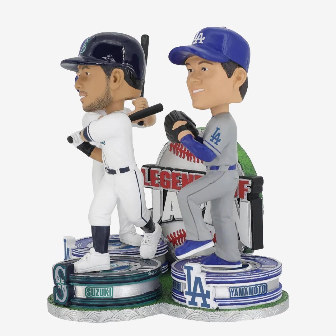| 大谷翔平、イチロー、山本由伸の3人が集合したボブルヘッドです。 大谷選手と山本選手がドジャースに移籍して、マリナーズのイチロー選手とともにMLBに集結したことを記念して製作された商品になります。 2024年に224個限定で発売されたFOCO社製です。 【状態】 新品未使用です。 写真撮影のため、外箱から取り出しました。 外箱は輸送時の傷や凹凸がありますので、写真をよくご確認ください。 【サイズ】 外箱:横幅21cm、奥行17cm、高さ31cm 中身:高さ13cm(台座含む) | |||
