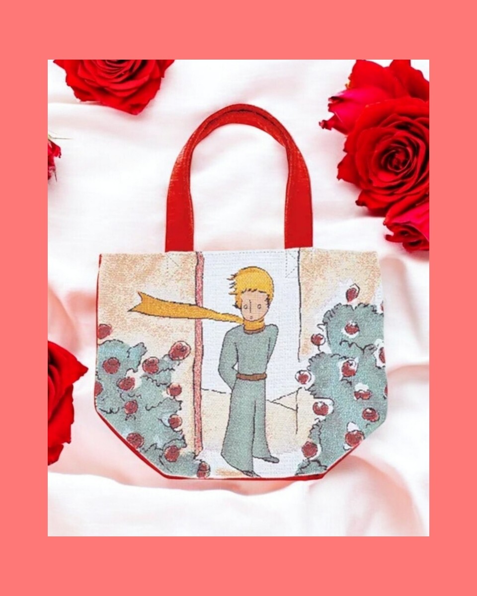 薔薇の赤がアクセントになった、可愛らしいデザインです。ちょっとしたお出かけにはもちろん、ランチトートやサブバッグにもぴったりです。