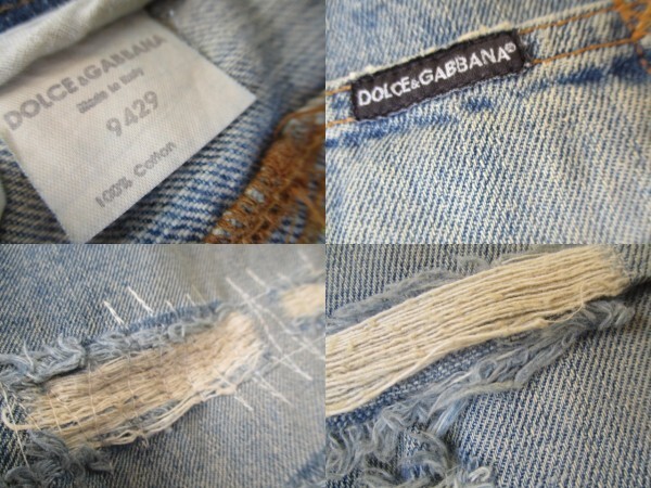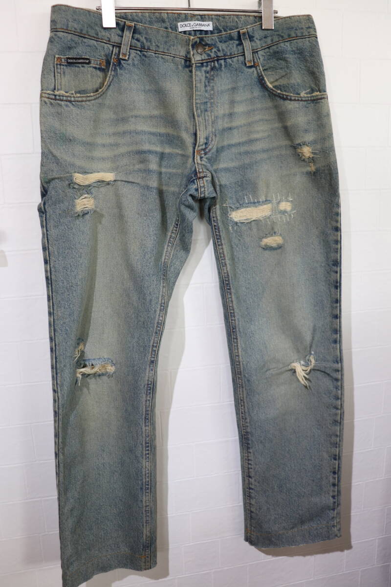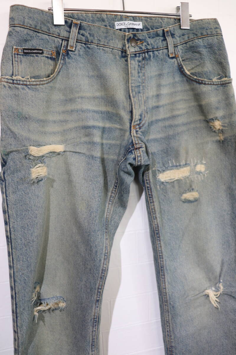 2000年代初頭 即決 Dolce&Gabbana ドルチェ&ガッバーナ クラッシュ&リペア&泥加工 デストロイデニムパンツ メンズ 50 ブルー