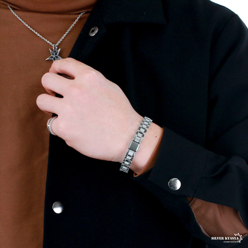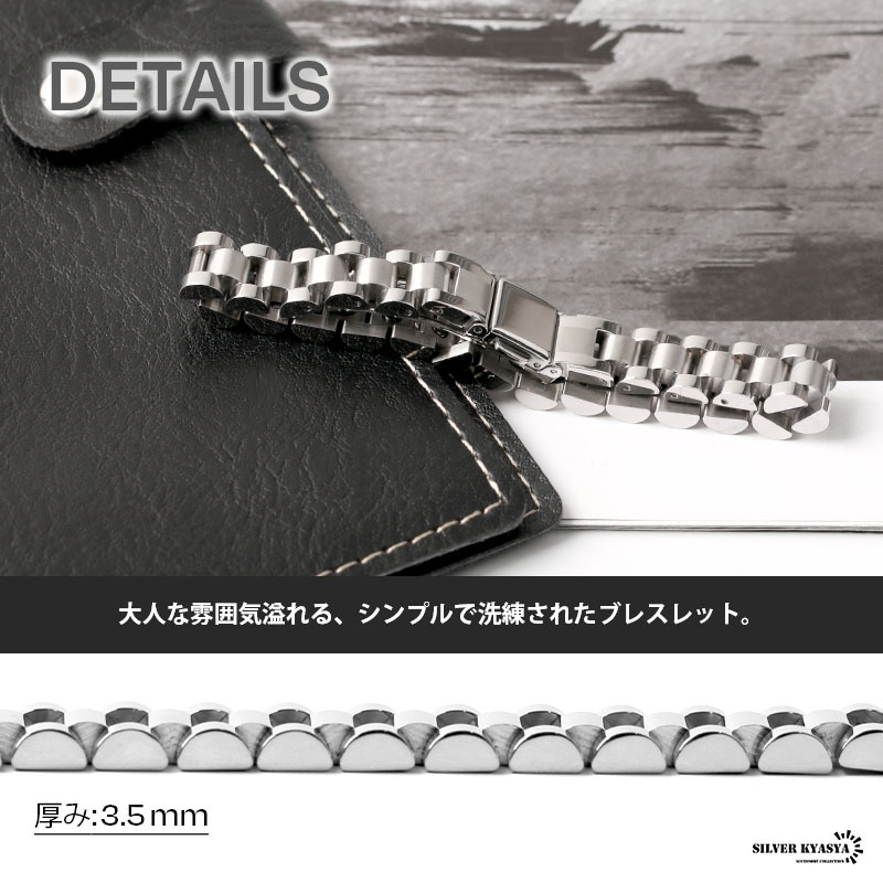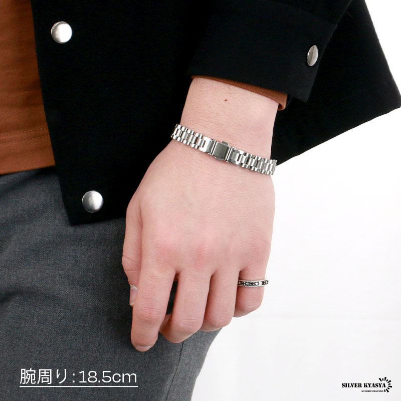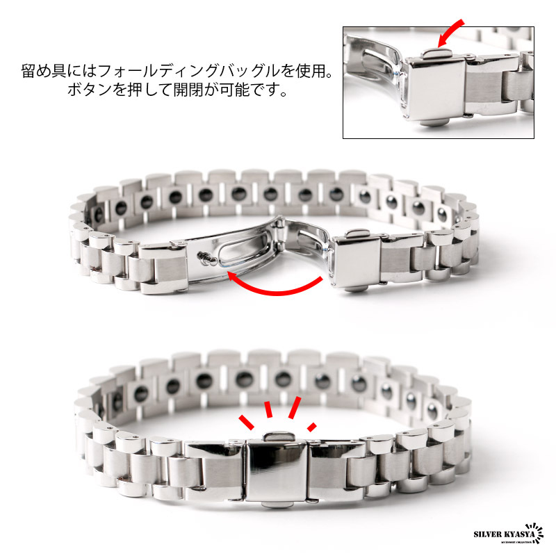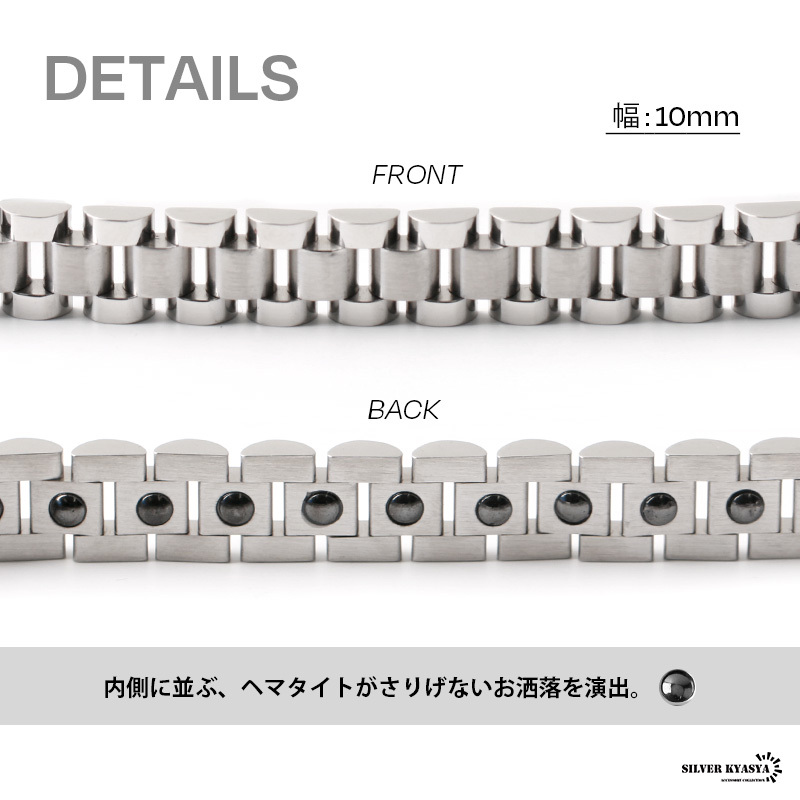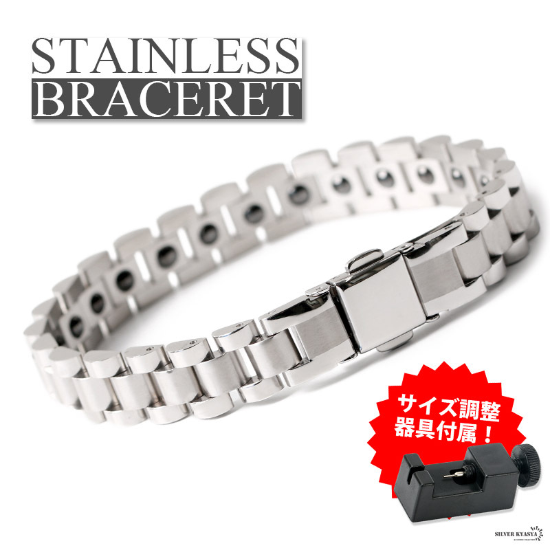 メンズブレスレット ステンレス シルバー メタルバンド 時計バンドブレスレット ヘマタイト アレルギー対応 調整器具
