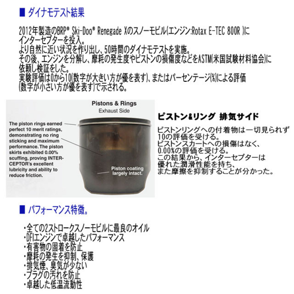 スノーモービル・2輪・ATV・ジェットスキーなど Polaris BRP/Ski-Doo (Rotax E-TEC engines) Arctic Cat Honda Yamaha Kawasaki Suzuki Direct-fuelinjected (DFI), Electronic-fuel-injected (EFI) Carbureted 【用途】 2ストローク 分離給油または50:1での混合給油 【種類】100%化学合成オイル 【規格】API:TC 、JASO:FC 【内容量】1QT(946ml)×6本 【ご注意】 ※こちらの商品に評価はしないでください。 ※※沖縄県に配送の場合※※ オイル・バッテリー等は危険物に分類されるため、航空便での発送ができません。 船便での対応となりますので、お届けまでにお時間をいただきます。 予めご了承ください。 | ||||