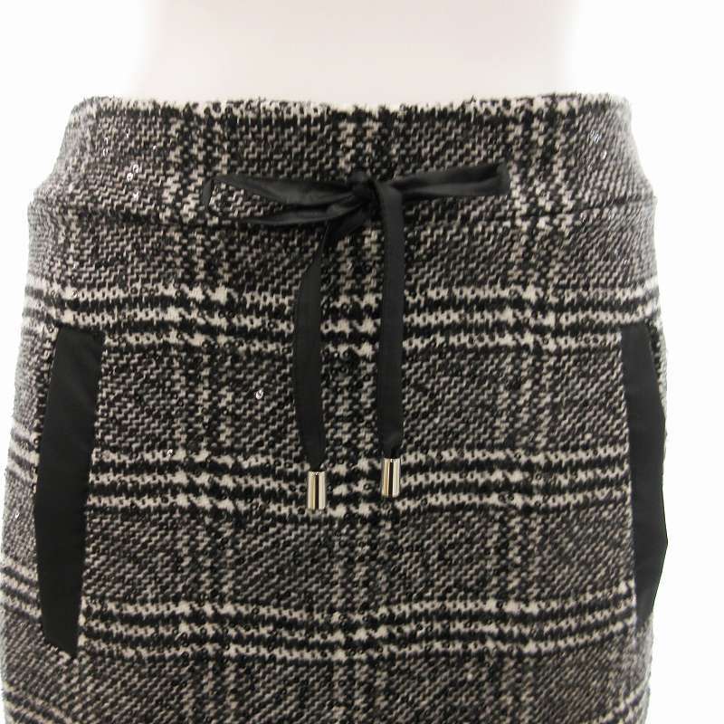 エルマノシェルビーノ ERMANNO SCERVINO 美品 タイトスカート ロング ミモレ 千鳥格子 ハウンドトゥース スパンコール 38 S