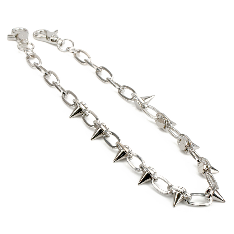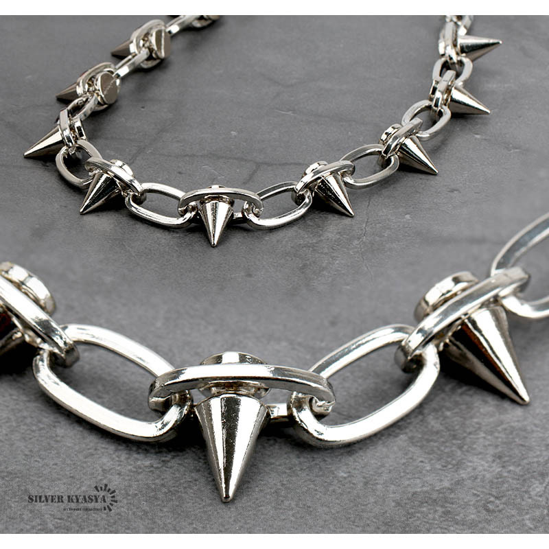 シンプルな小豆タイプのチェーンのコマの間にパンキッシュなスタッズ(鋲)を装着した個性的なデザイン。
