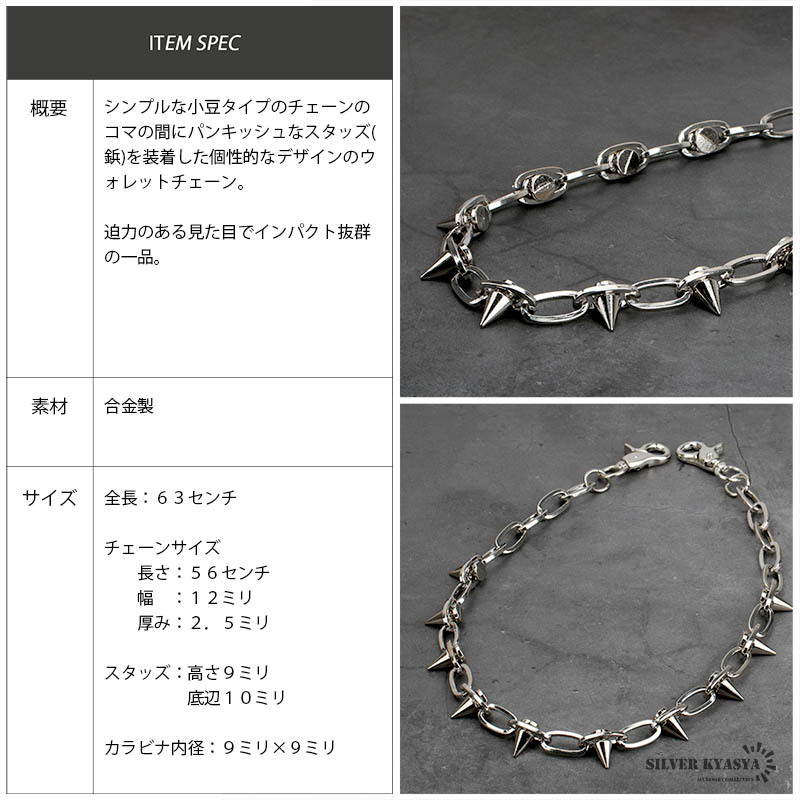 スタッズ ウォレットチェーン メンズ あずきチェーン バイカーチェーン キーチェーン キーフック カラビナ キーリング 63cm