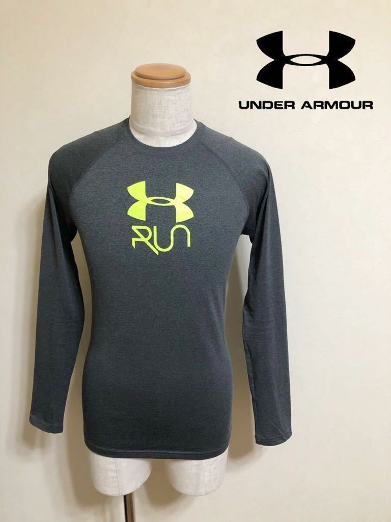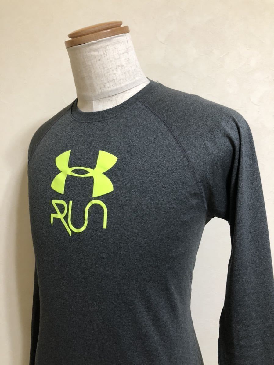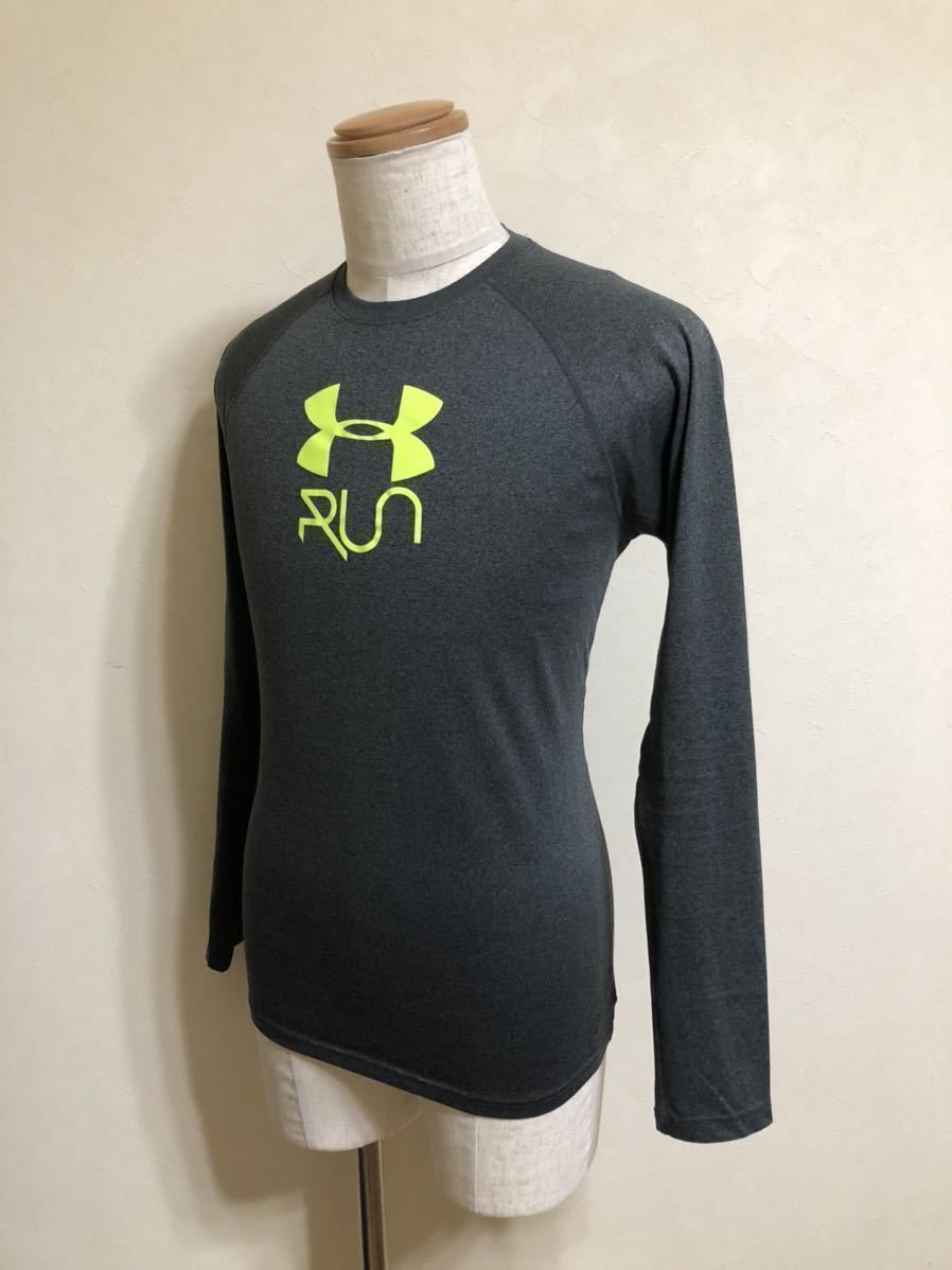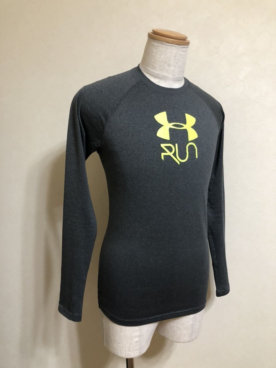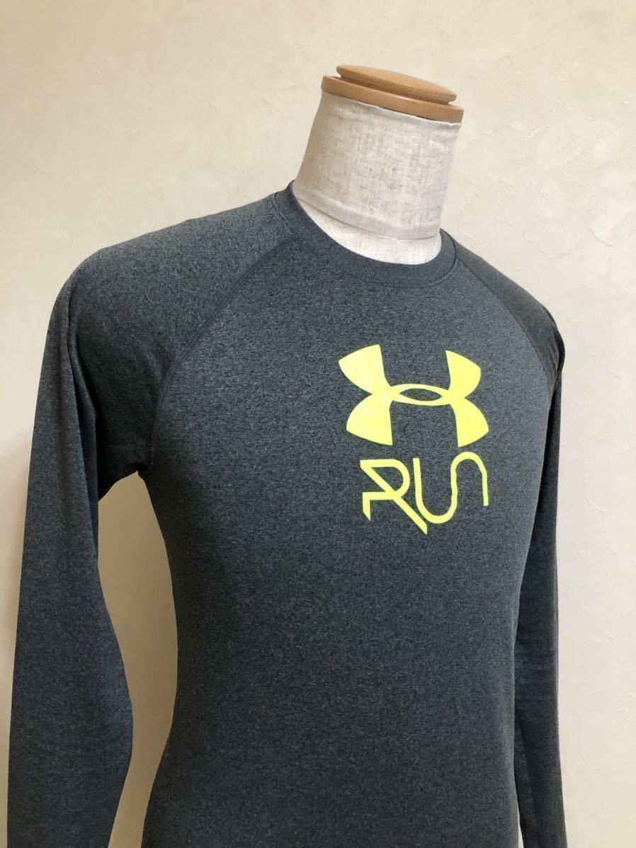 【良品】 UNDER ARMOUR HG FITTED RUN アンダーアーマー ヒートギア ランニング ウェア トップス サイズSM チャコールグレー 長袖