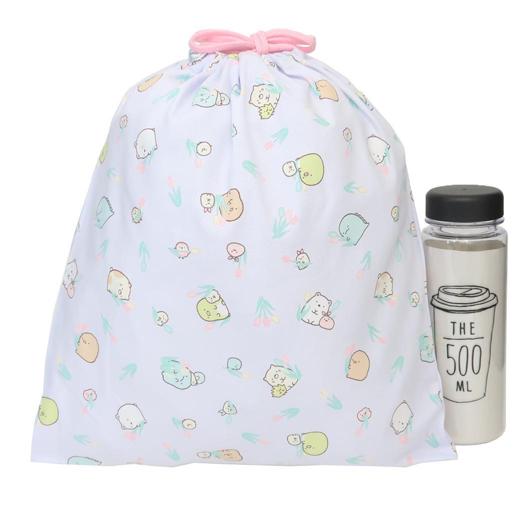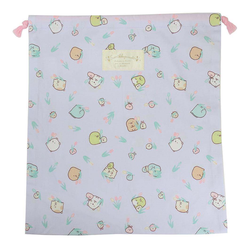 すみっコぐらし 巾着袋 きんちゃくポーチ大 総柄 ラベンダー 新入学 サンエックス アートウエルド 体操服入れ キャラクター グッ