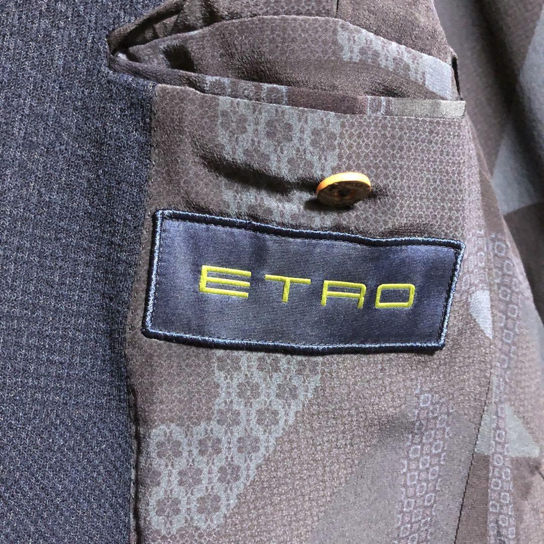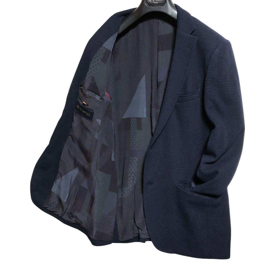 美品 ETRO テーラードジャケット イタリア ネイビー エトロ tailored jacket サイズ54 XL スーツ 上着 メンズ 男性 高級 裏地総柄 ブレザー