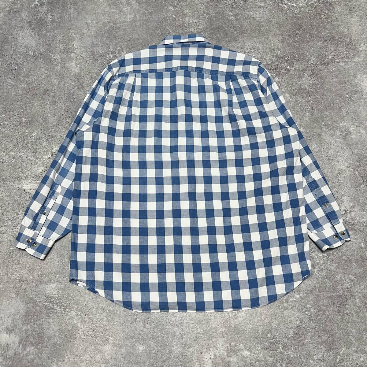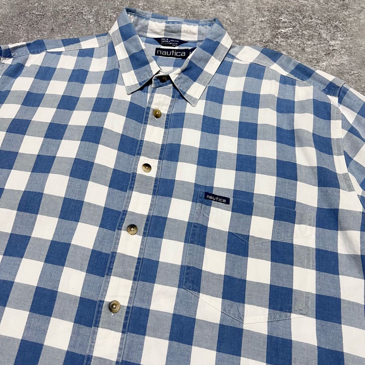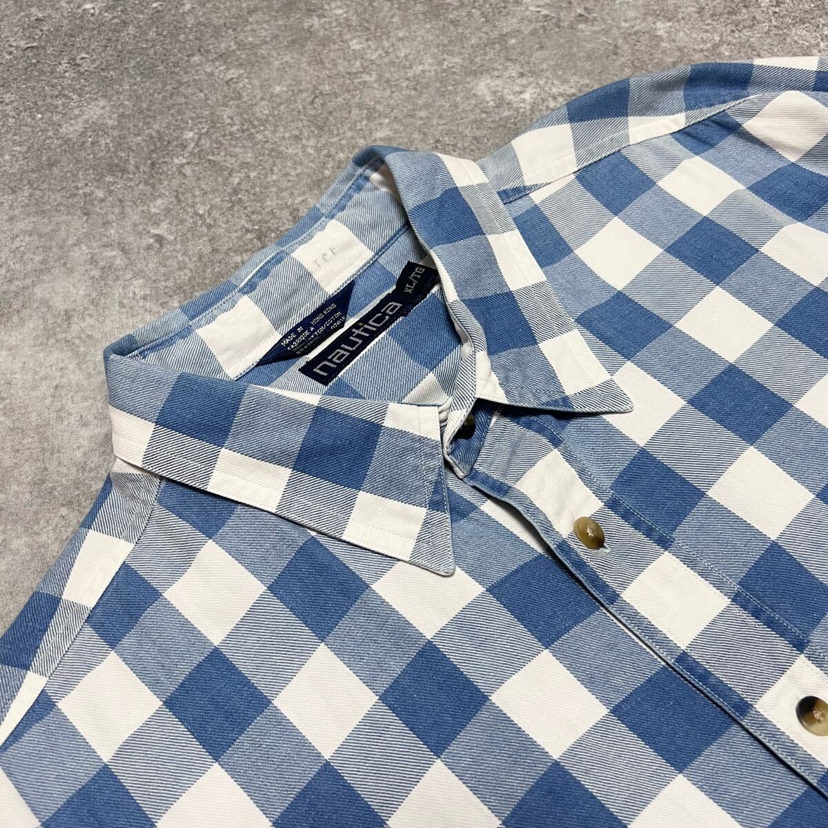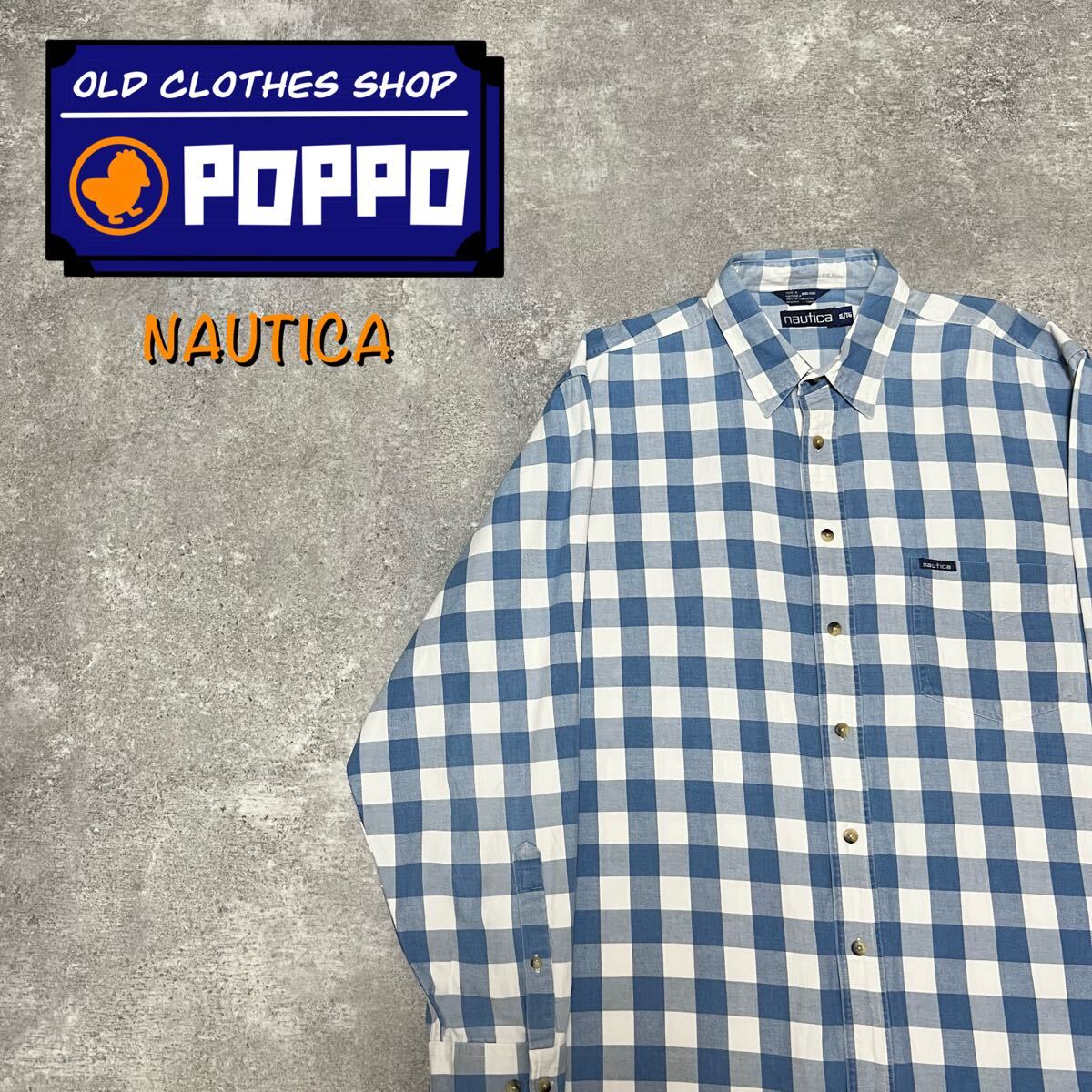 90年代ノーティカ ポケットロゴタグライトブルーブロックチェックシャツ 90s