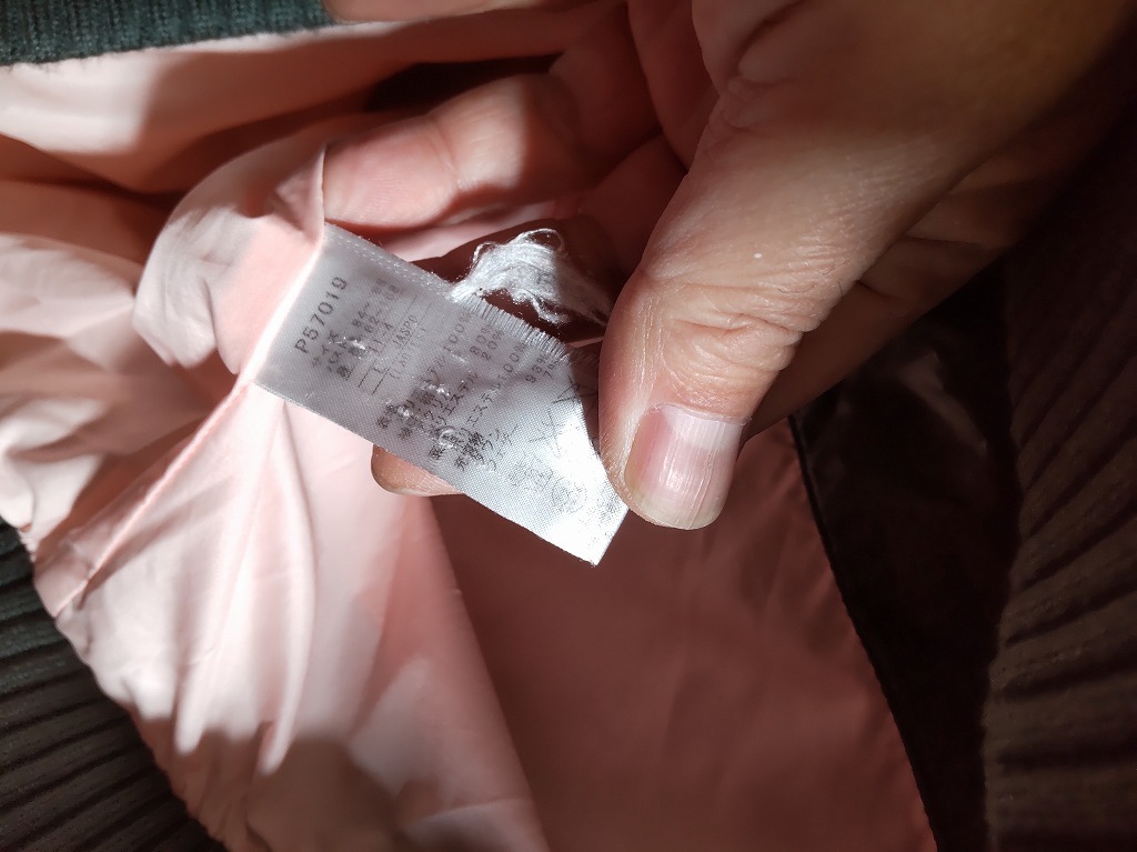 素材:ポリエステル、中綿・ダウン97%フェザー3%、リブ・アクリル80%ポリエステル20%
