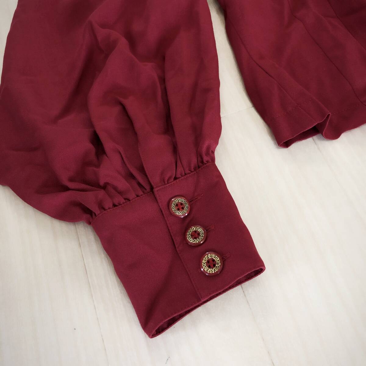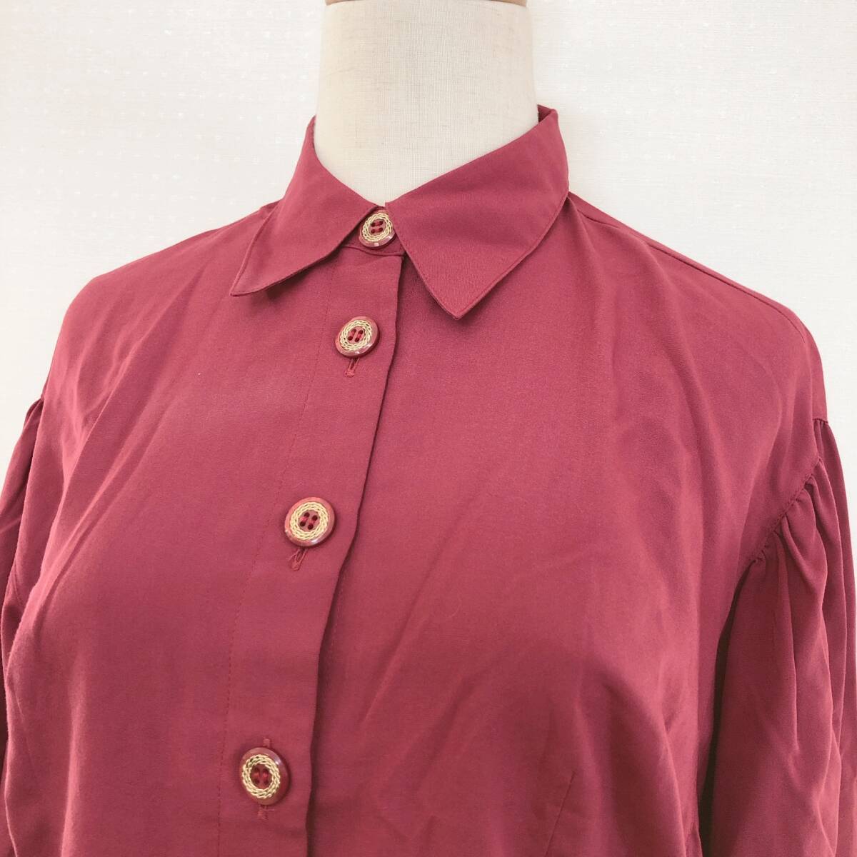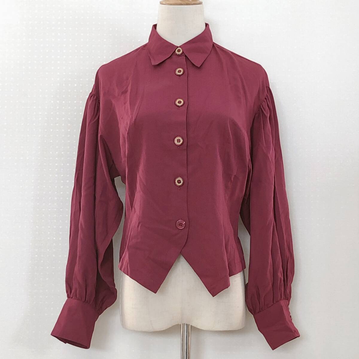 YX1621 Tokyo blouse レディース トップス ブラウス 長袖 薄手 4つ穴ボタン バーガンディー ボルドー シンプル エレガント おしゃれ 春秋