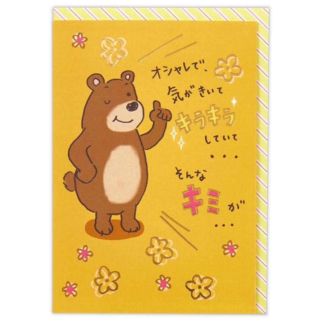 贈ってももらっても楽しいメッセージカード サングラスをかけるイカしたクマを描いたインパクト大!なバースデーカード。贈ってももらっても楽しいグリーティングカードこちらは箔加工がとってもおしゃれな[グリーティングカード]APET素材のカードです。大切な気持ちを可愛いデザインが届けてくれますほかにもいろいろあるのでお気に入りをみつけてくださいカードサイズ:約108x154mm封筒サイズ:約114x162mm