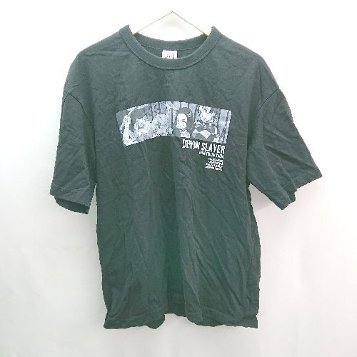 ◇ GU ジーユー 鬼滅の刃 キャラクター ラウンドネック 半袖 Tシャツ サイズL ブラック レディース (メンズ) E