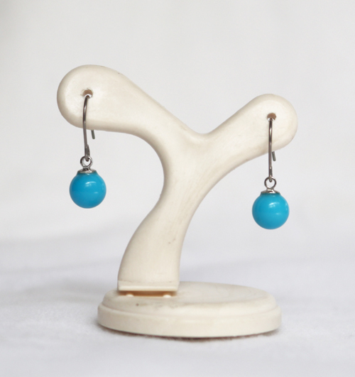 天然宝石 トルコ石丸玉ピアス フックタイプ(チタン金具)6mm