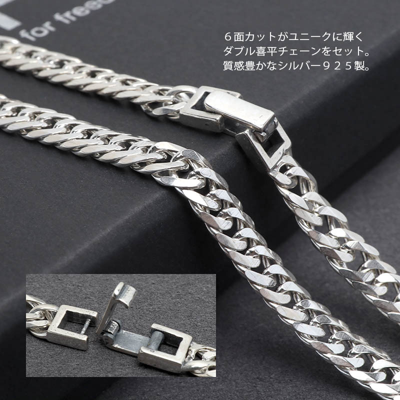 BFF ブランド RAKUGAKIリング ネックレス シルバー925 ダブル喜平ネックレス メンズ 英語 60cm 専用BOX付属