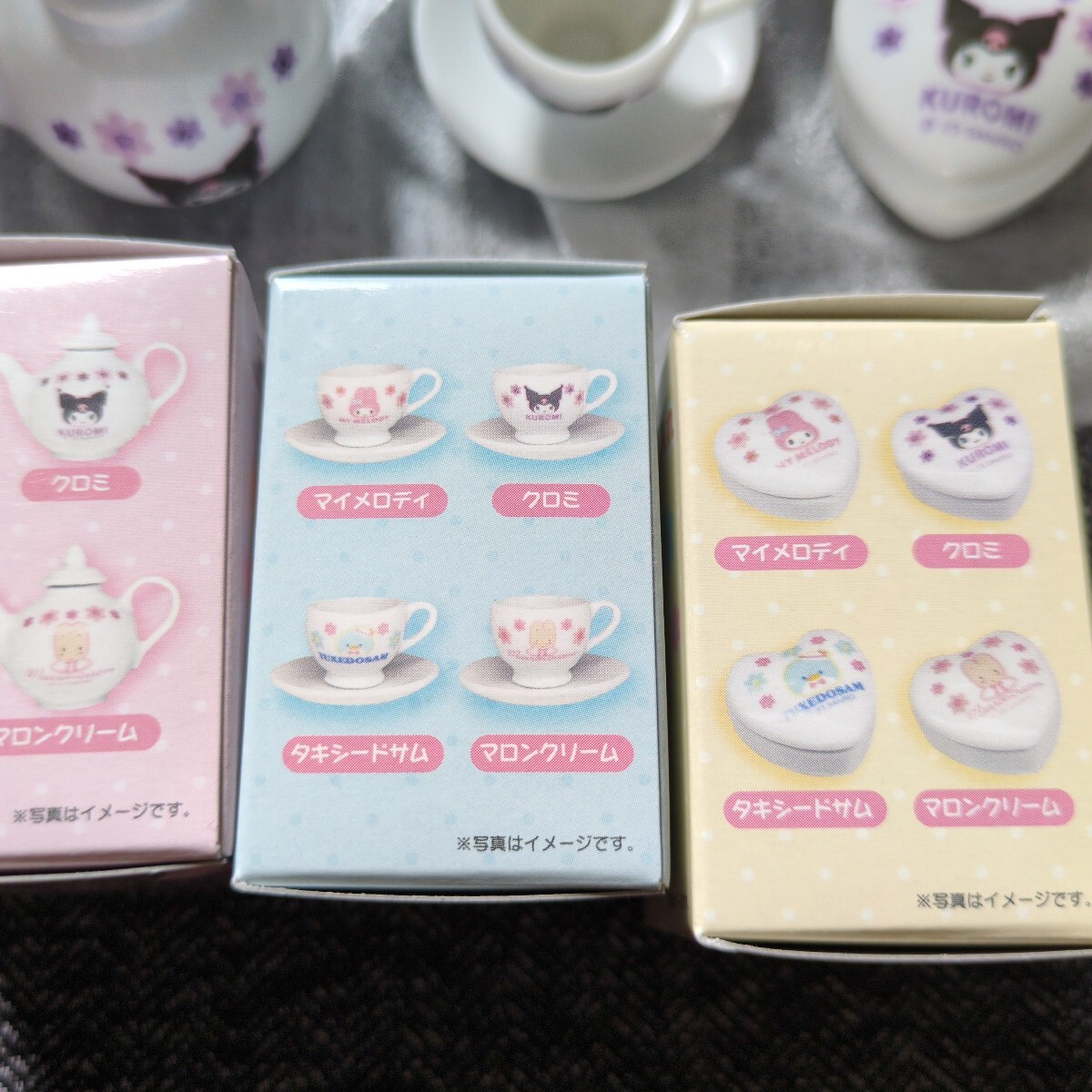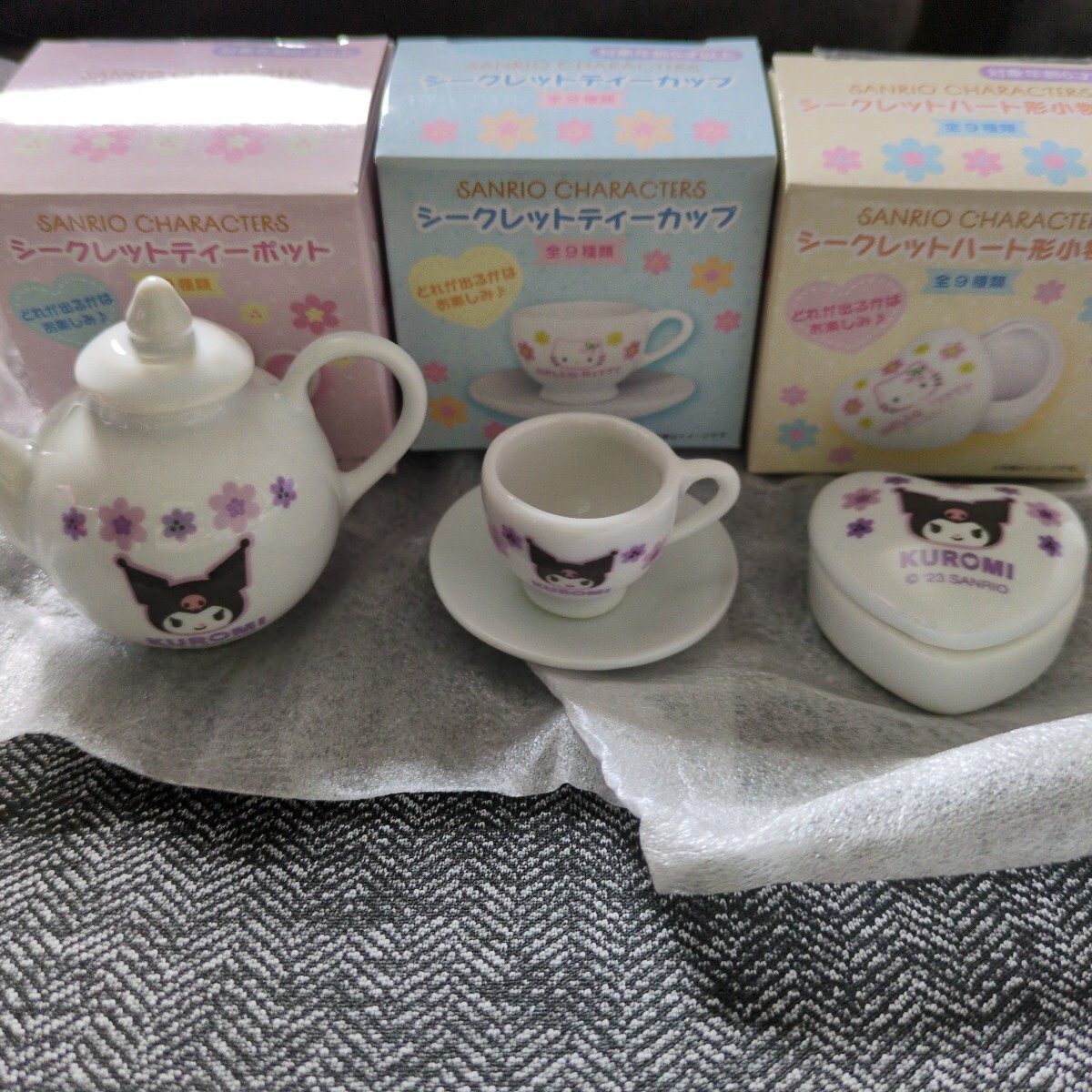 サンリオキャラクターズ シークレットティーポット ティーカップ ハート形小物入れ クロミ 3種セット です。