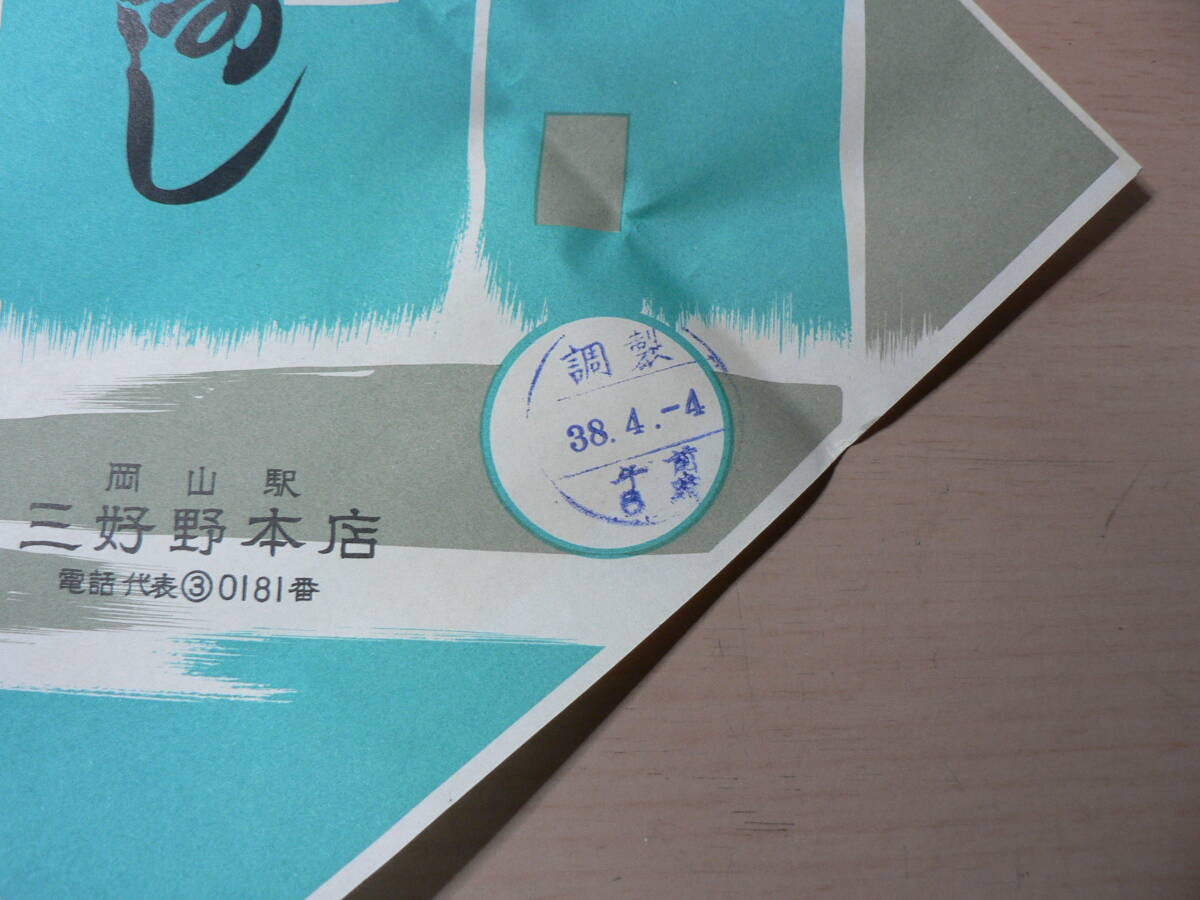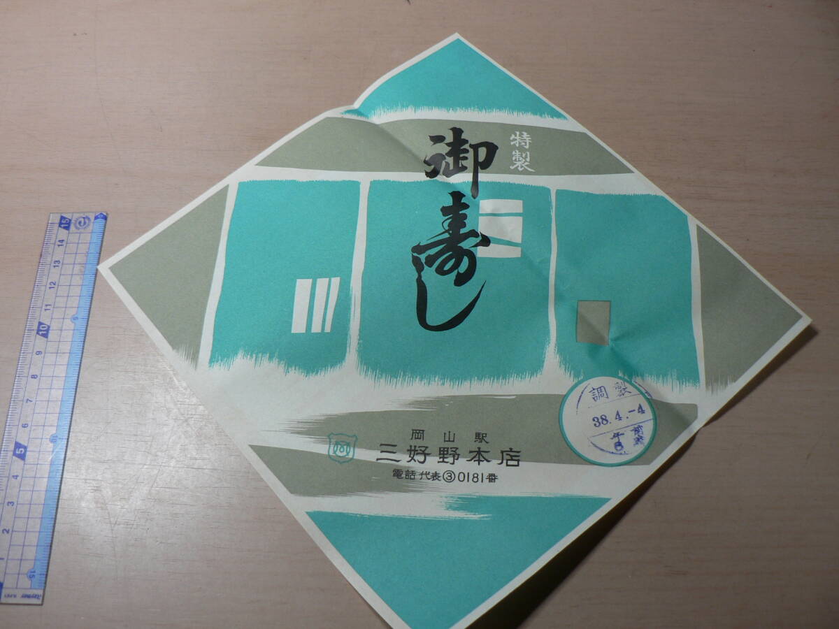 駅弁 掛紙 岡山駅 特製 御寿司 三好野本店 岡山県岡山市 昭和38年