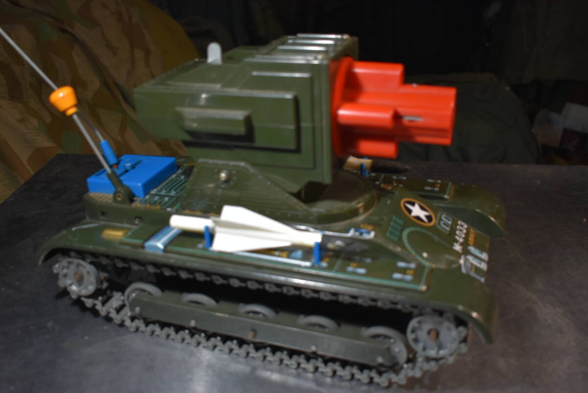 Qr222 Vintage Rare Masudaya Missile Tank MS-33 Army Electric Tin Toy Japan マスダヤ 電動 ミサイルタンク MS-33 ブリキ戦車 稀少 *80