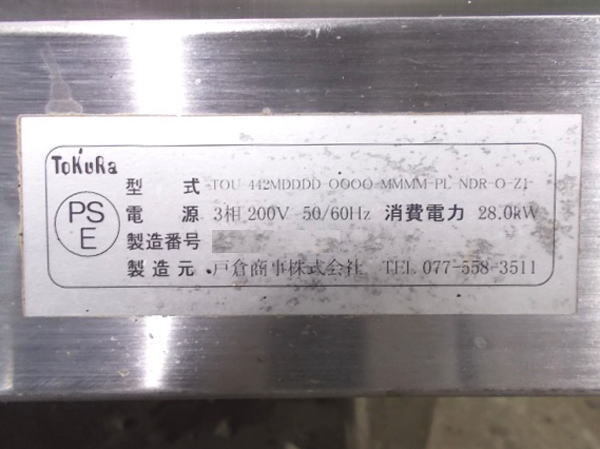 戸倉 トークオーブン TOU-442 ベーカリーオーブン 1790×1230×2030 中古厨房/24M0201Z