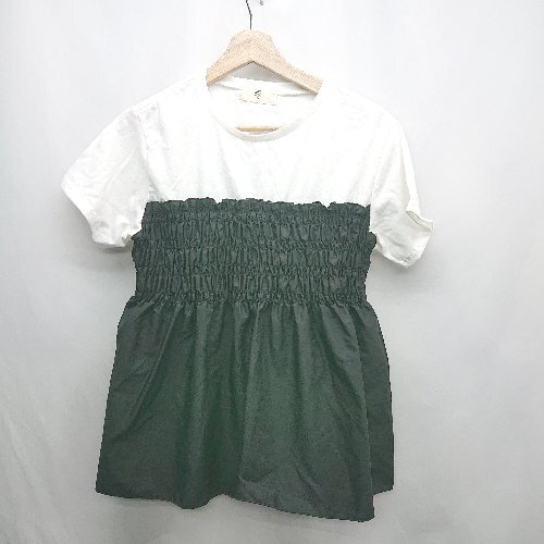 ◇ ⊂ rps シャーリング加工 半袖 チュニック サイズF ホワイト ブラック レディース E
