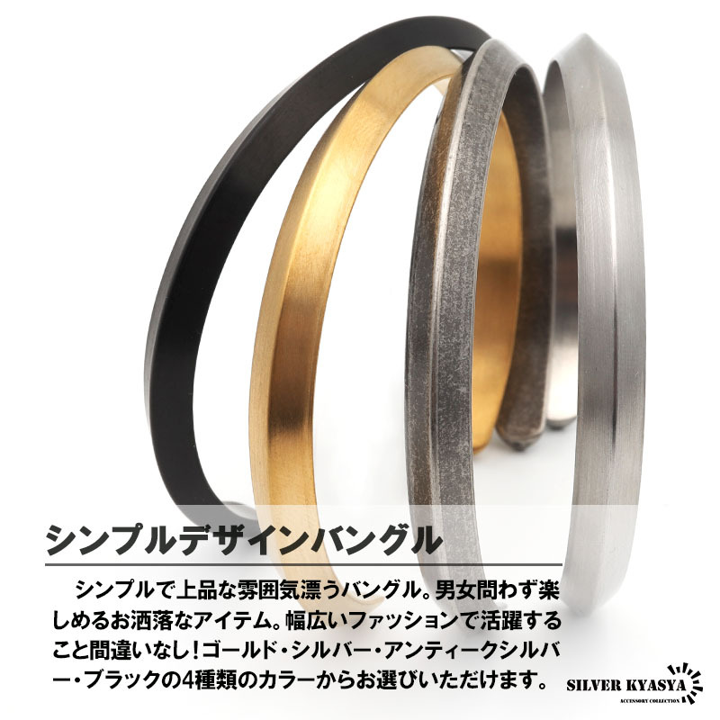 上品な雰囲気漂うバングル。男女問わず楽しめるお洒落なアイテムです。幅広いファッションで活躍すること間違いなし!