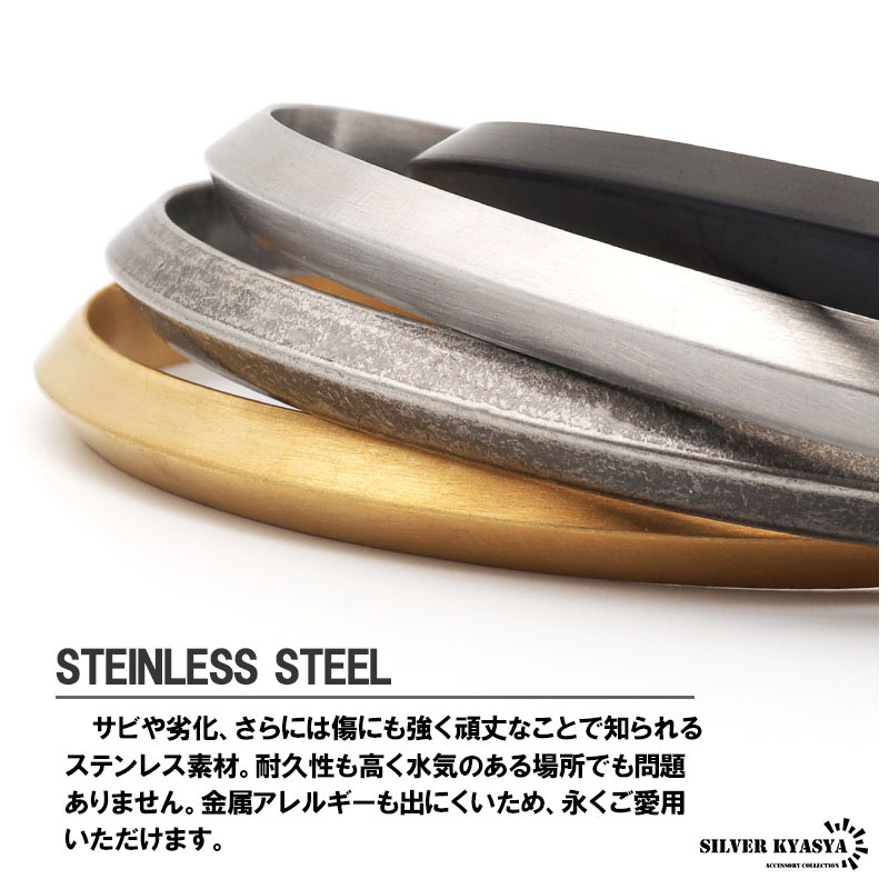 サビや劣化、さらには傷にも強く頑丈なことで知られているステンレス素材。耐水性も高く水気のある場所でも問題なく使用できます。金属アレルギーも出にくいため、永く使えるアクセサリーとして人気です。