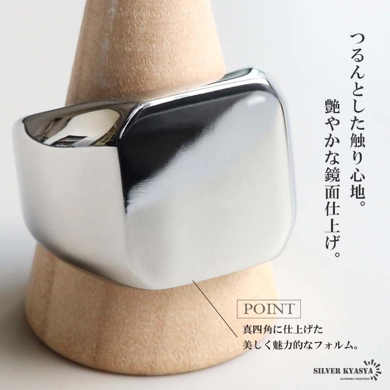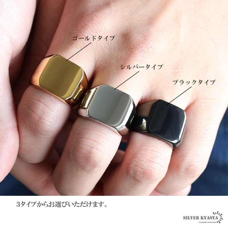 スクエアなフォルムにデザインされた印台リング。幅が広く、重厚感たっぷりな仕上がりで存在感◎カラーは全3種類からお選びいただけます。