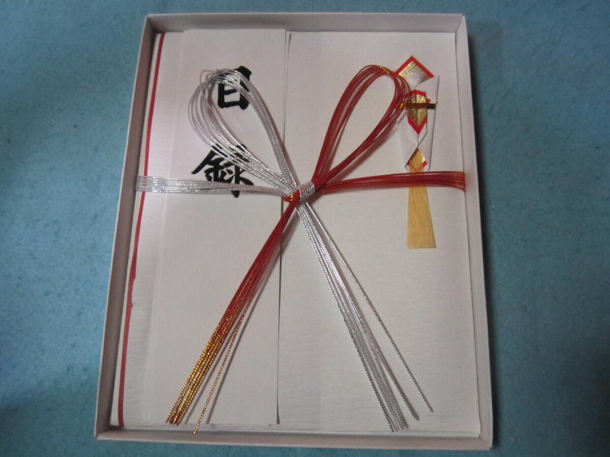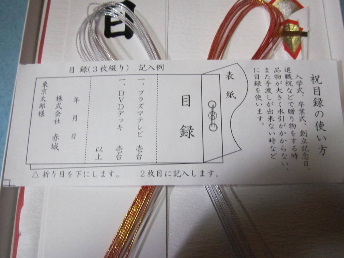 大きくて手渡しできない品を送る際に。 当日ではなく後日品物を渡す際に。 婚礼事以外の行事でお使いください。 【用紙サイズ】長さ53×高さ19.7センチの3枚綴り 用紙は結び目を右にして折り目を下にして使用 ダメージ説明 外箱は折れや汚れありますが中味は未使用です。 | |