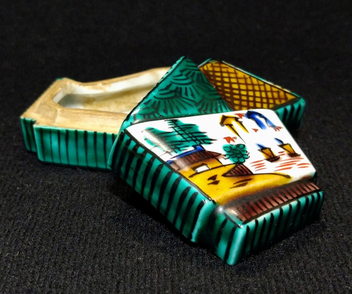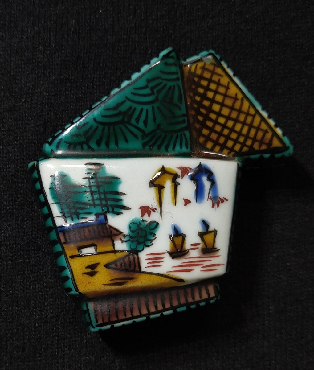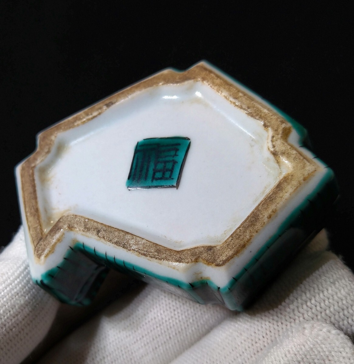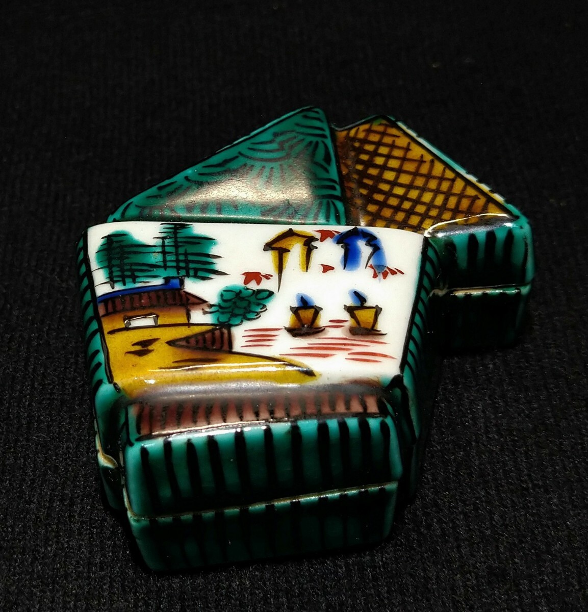 小さい体躯ながらもキリッとした佇まいの美しい香合でございます。素人採寸で申し訳ございませんが、幅7.2cm、6.2cm、高さ2.6cmでございます。