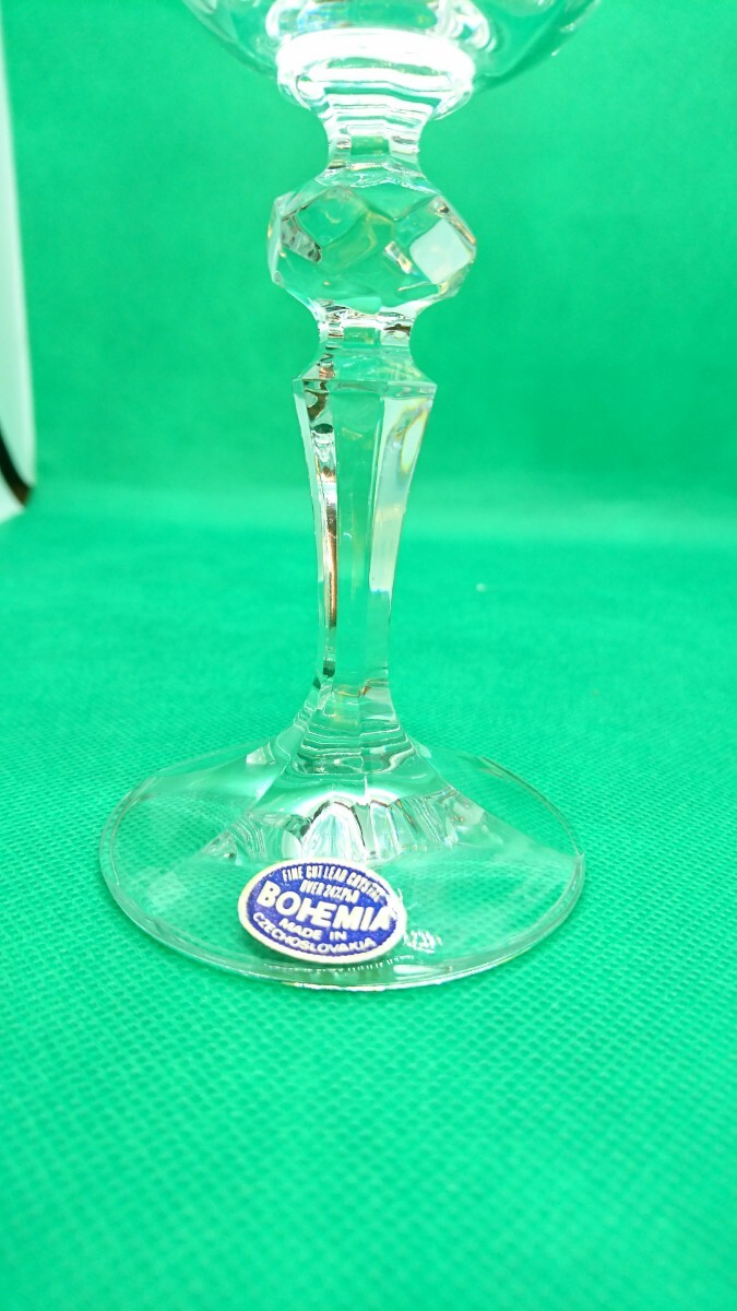 ご閲覧いただきありがとうございます。クリスタルガラスのボヘミアグラスです。傷や汚れなどありませんが、7から8年も自宅倉庫に置いて居たため、木箱が少しの汚れと臭いがございます。品物の寸法ですが直径8㎝、高さ18㎝です。ノークレームノーリターンでお願いします。