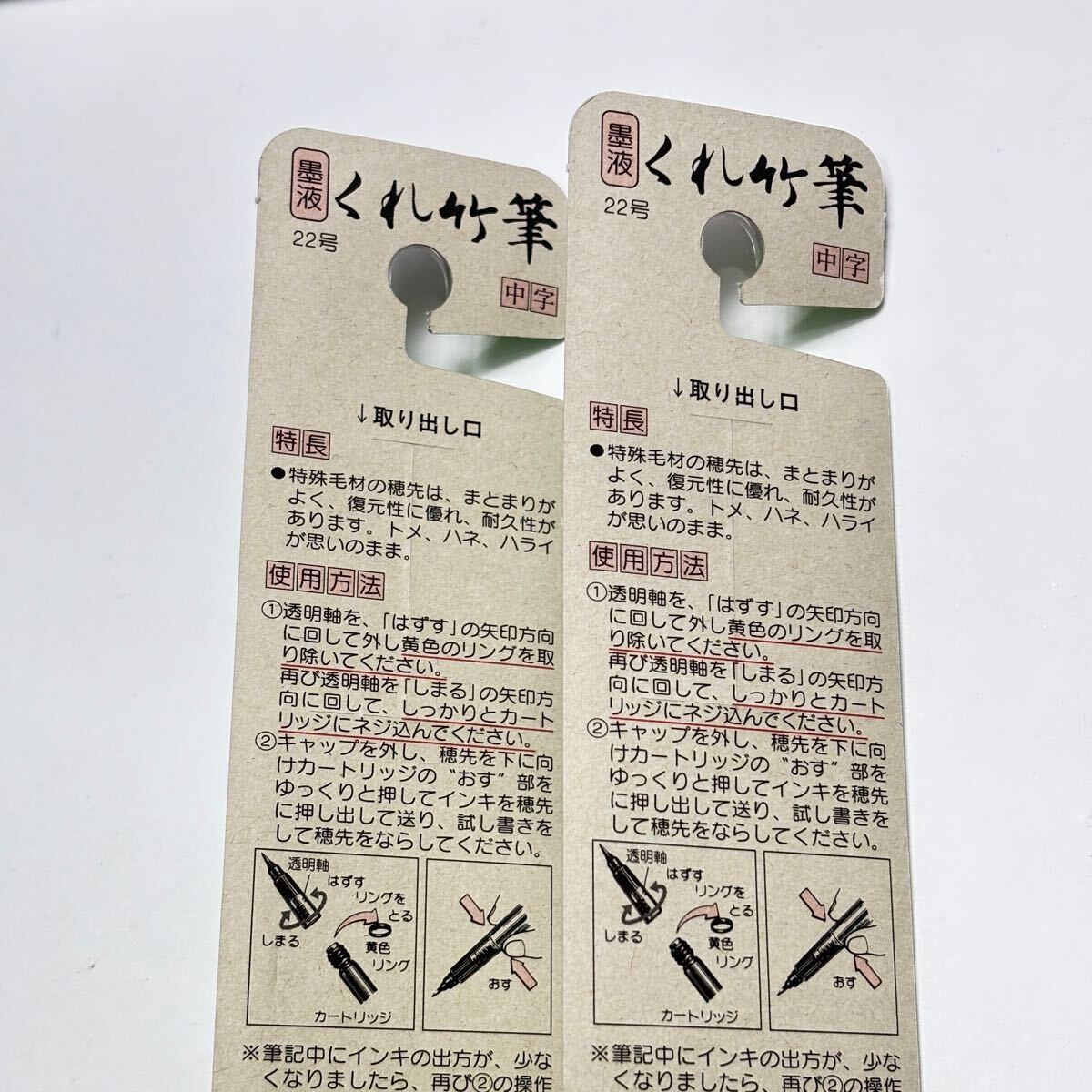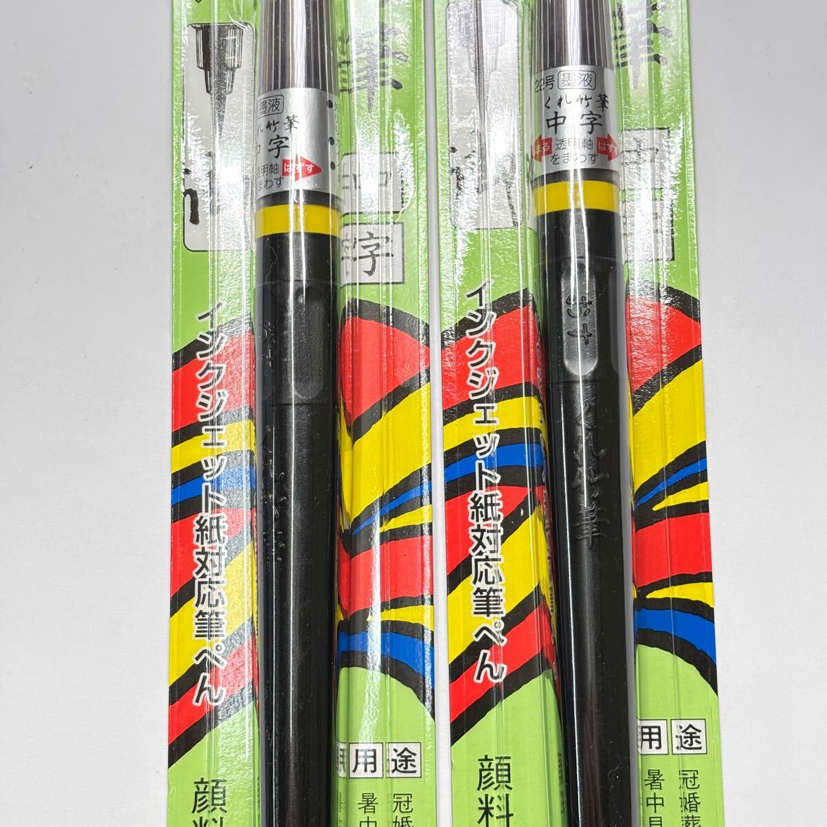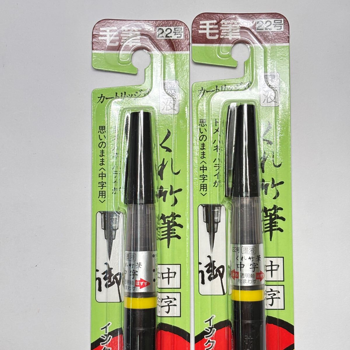 【新品未使用】文具店在庫品 くれ竹筆 筆ペン 硬筆・毛筆 ふた穂 かぶら 2本 @ | |||