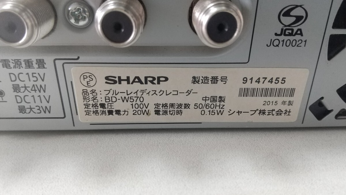 K2245 SHARP AQUOS BD BD-W570 2015年製 ブルーレイレコーダー/シャープ/アクオス 通電OK その他不具合あり 現状品 JUNK