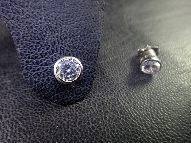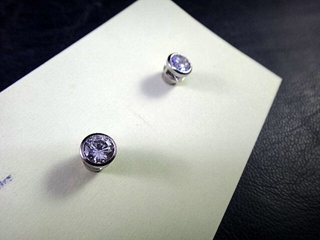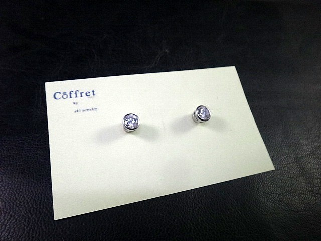 7mmCZ"キュービックジルコニア”をフクリン留の枠に留めた シンプルなマグネット イヤリングです。