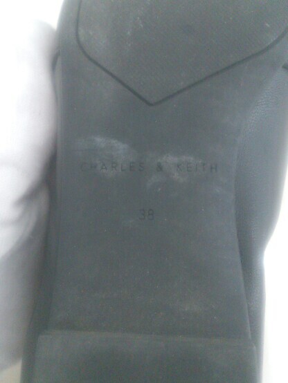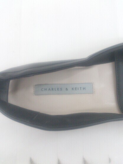 ◇ CHARLES & KEITH チャールズ&キース スクエアトゥ フラットローファーシューズ サイズ38 ブラック レディース P