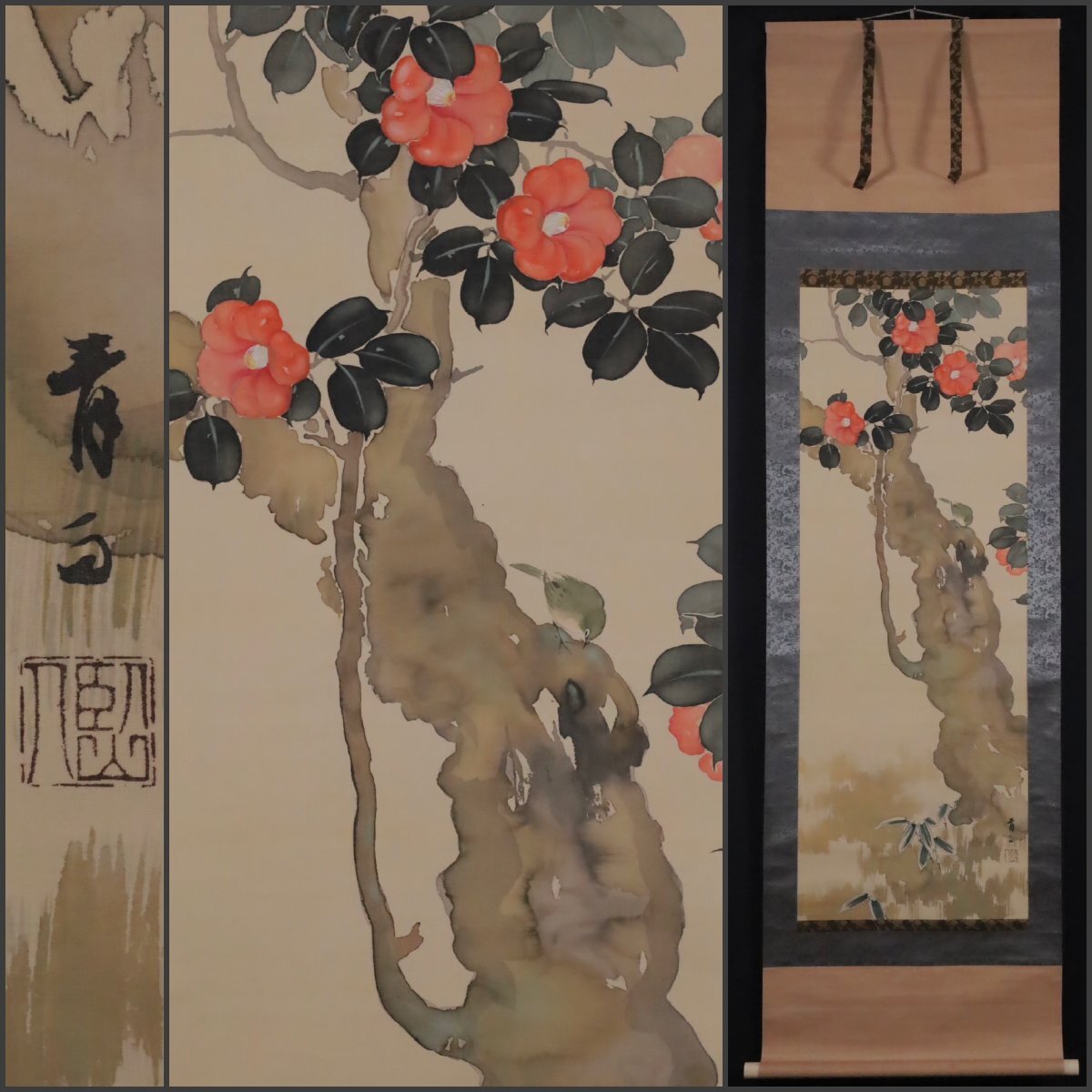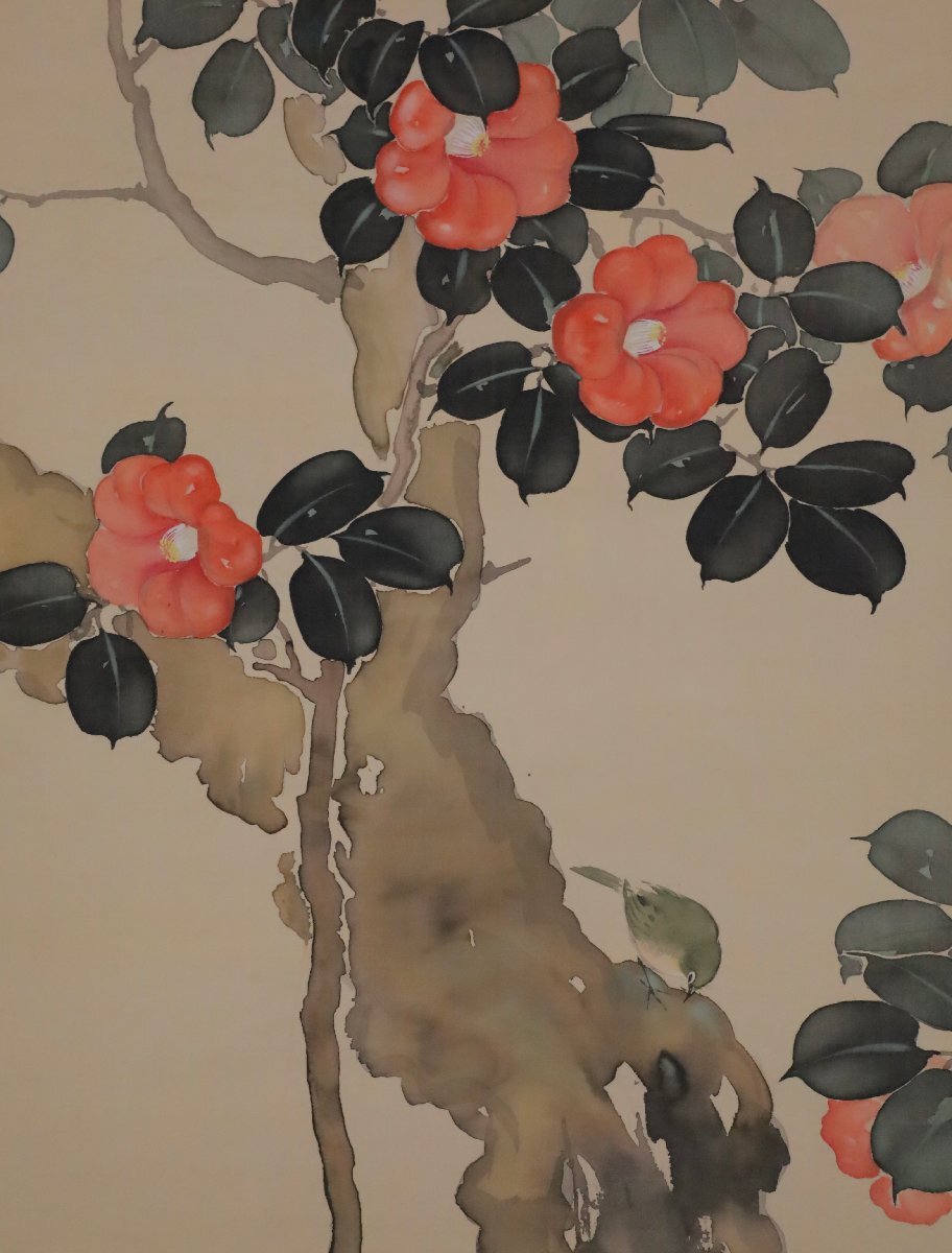 【模写】吉】11924 花鳥図 作者不明 茶掛け 茶道具 中国画 掛軸 掛け軸 骨董品