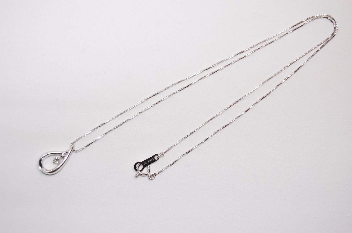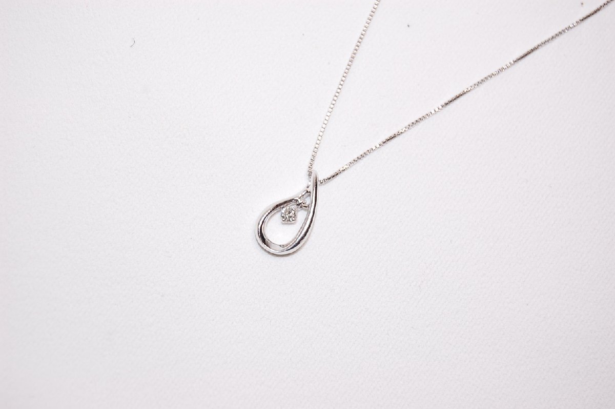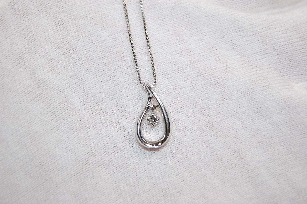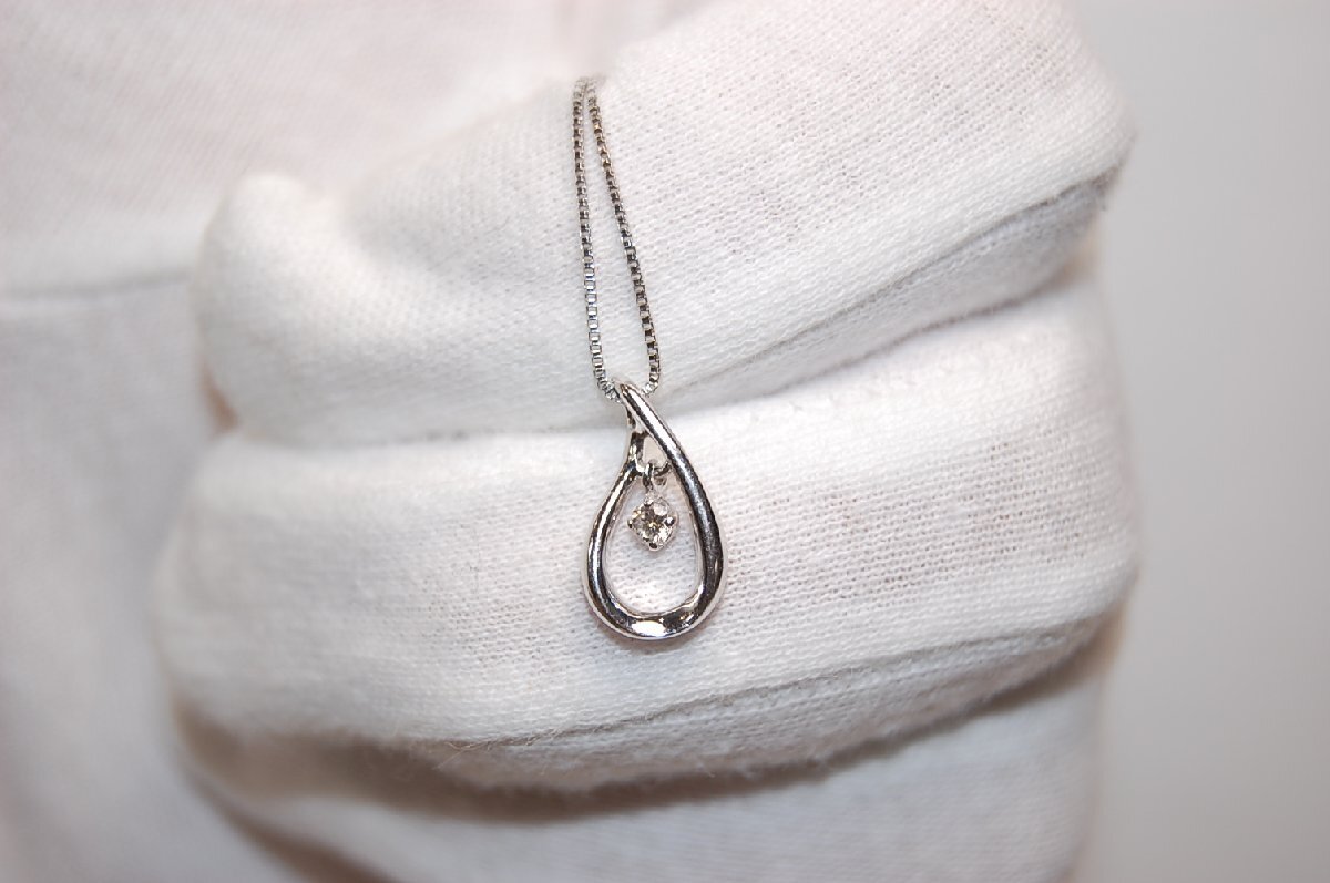 【商品名】4℃ ヨンドシー K18WG ホワイトゴールド ティアドロップ ダイヤモンド ネックレス 【素材】K18WGxダイヤモンド 【サイズ】ペンダント約W7.8mmxH14mm。ダイヤモンド直径約2.6mm(枠込み)。チェーンの長さ約39.5cm 【色】ホワイトゴールド 【付属品】無し 【備考】K18WG表面に少々の小傷あり。ダイヤモンドの内包に少々の傷と不純物あり。重量2.6g。