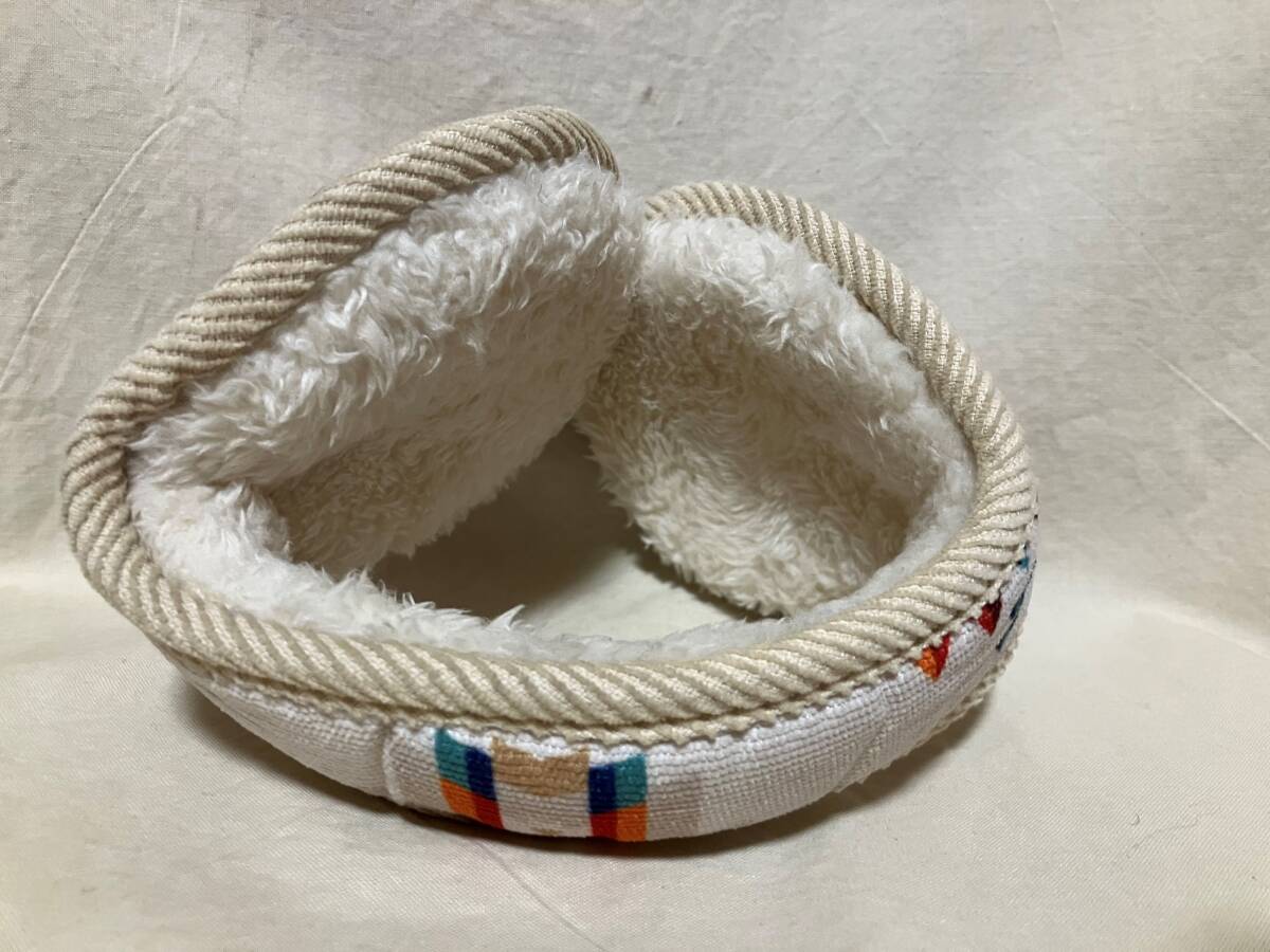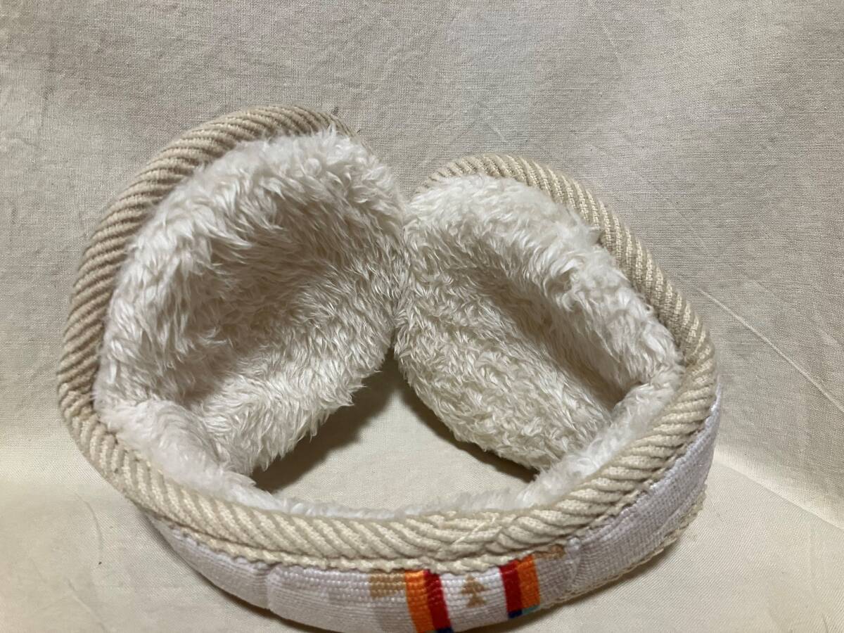 | 色:オフ白ベースのチマヨ柄 表現するのが難しい色です ご了承ください 素材:記載がありません 表は綿のコーデュロイ系? 内側は毛足のある柔らかいボア素材(ポリエステルでしょうか) ポリエステル100% サイズ:記載なし 普段Mが装着できました 採寸:重さ50グラム ※いずれも最大値の計測になります 測りどころが微妙なのであくまでも参考程度としてお考え下さい 今掛けているのは標準サイズのヘッドマネキンだと思います 中古品です 一時期気に入って被っていました(期間回数等の詳細は不明です 御了承下さい) ※写真参照/パイピングに毛羽立ち感あります 内側のボアの毛が寝てぺったんこにはまだなっていないようです 薄汚れ感もまだ発生していないようです 保管に伴うたたみジワ、くせあります 特に目立つような傷汚れ等は見当たりません 今後も使って頂けるイヤーマフだと思います 上記の事及び、中古品をご理解頂ける方宜しくお願い致します ※発送時はしわやくせがつく場合があります ご了承ください |