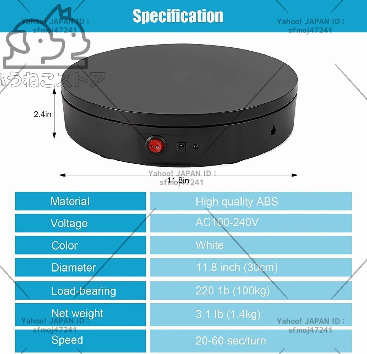 電気ターンテーブル360度電動回転ディスプレイスタンドリモコン撮影用ターンテーブル220 Lb(100㎏)大容量11.8インチ(30㎝)