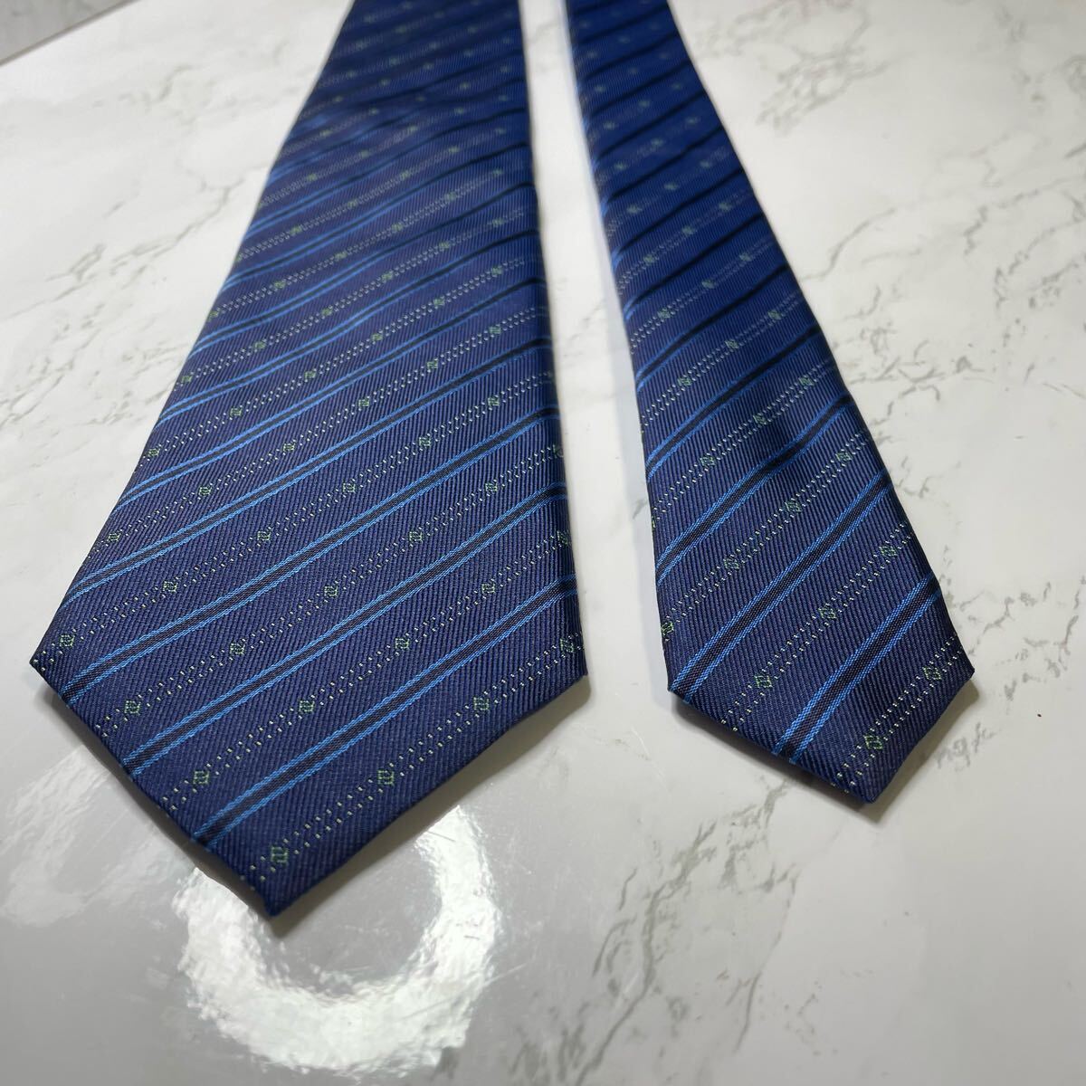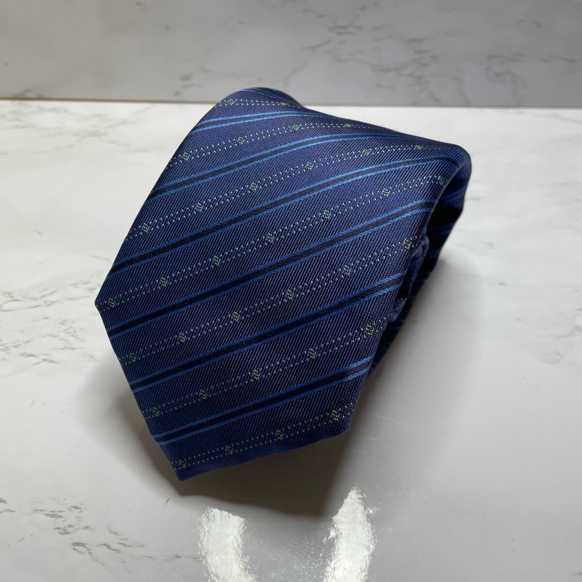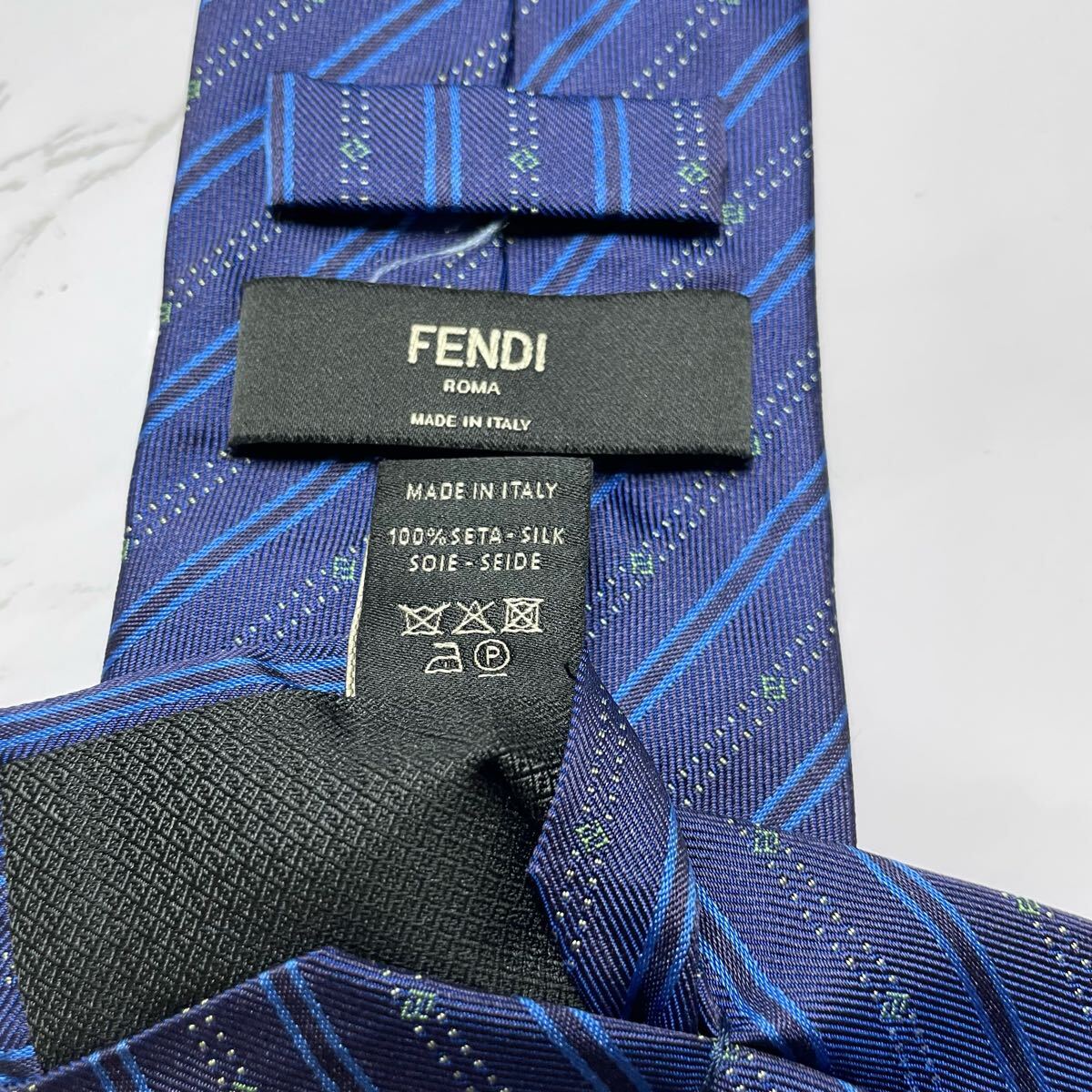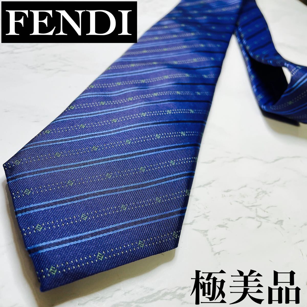 極美品FENDI ネクタイ 現行 ズッカ柄 レジメンタル 刺繍 高級シルク