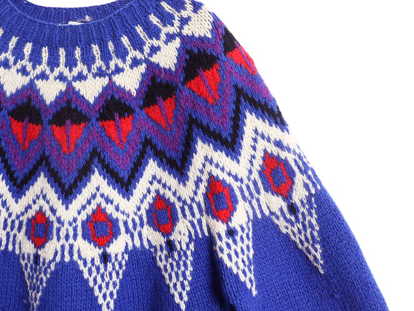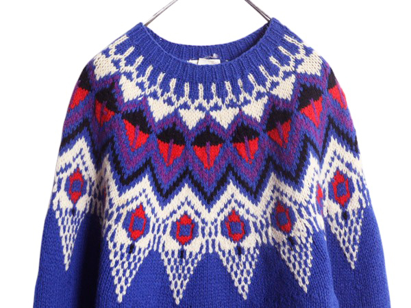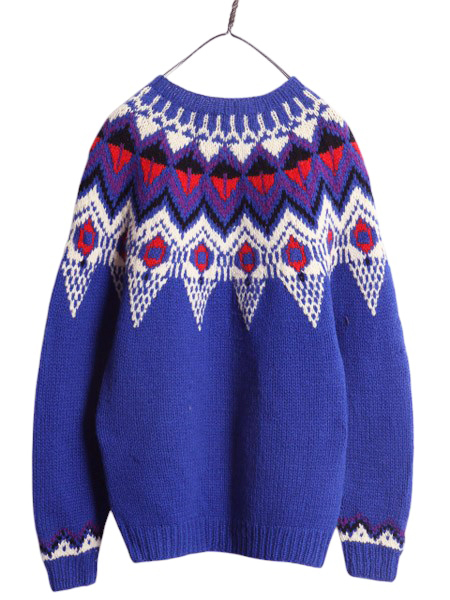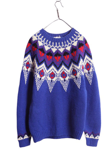 | 商品名 | 90s LORD&TAYLOR ノルディック ニット セーター メンズ M レディース L / 古着 オールド シェットランド ウール 求心柄 丸ヨーク 厚手 総柄 |