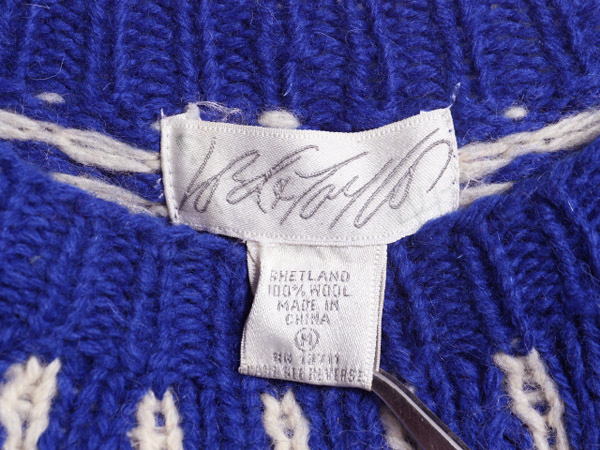 Lord & Taylor の ノルディック ニットセーターです。 1826年設立のアメリカで最も古い百貨店の一つである Lord & Taylor 品質はお墨付きです。 素材は、100% SHETLAND WOOL ( シェットランドウール ) シェットランドウールは シェットランド諸島に生息する羊からとれるウールで 光沢感があり、柔らかい毛質が特徴で、産毛量が少ない 軽く保温性の高い高級素材です。 モックネックタイプ、襟を高く設定することによって 首周りの保温力も高くなっています。 コーディネートの良いアクセントになる、ブルーベース トラディショナルなノルディック柄 存在感のあるグッドデザイン 人気の高い求心柄 脇や肩周りに繋ぎ目のない美しい編みこみ 技術的にも難しいラウンドヨーク仕様 流行に左右されない 使い勝手の良い、シンプルなデザイン ざっくり着れる、丸っこい人気のシルエット 長く愛用できる商品です。 男女兼用で着用可能です 実寸をご確認ください |