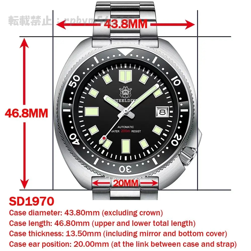 ◇商品説明 | 特徴:水の証拠 ジスプレー体:Arabic数字マーカー スポーツタイプ:Diving ケースの形:ラウンド ケース厚さ:13.5mm バンド幅:20から24mm バンドの材質:ステンレス 物質的な箱及び場合:プラスチック 商品内容:SD1970 ダイヤル窓材タイプ:サファイア クリスタル 特徴:ダイバー ダイヤル直径:40から44mm 防水深さ:20bar 留め金タイプ:折りたたみ式安全留め金 バンドの長さ:26cm 場合材料:ステンレス 様式:SPORT 動き:メカニカル ハンド風,自動自己風 ブランド名:STEELDIVE 項目タイプ:機械式腕時計 Model:SD1970 Movement:NH35 automatic movement Watch Bezel:Ceramic/ サイズ: 38.00*32.10*1.20mm Brand:Steeldive Luminous:Super luminous Dial サイズ:33.0*31.0*29.3*0.4mm Bezel サイズ:38*32.1*0.5mm Glass サイズ:32.00*2.70mm Custom logo:MOQ 50PCs Packing:Box/ T a g/ Warranty Card/ Manual ・複数サイズ・カラーがある商品に関しては、落札後の取引メッセージ にて希望の種類をお伝えください。 写真に記載のあるカラー、サイズ、種類は選択可能になります。 例)【〇枚目の画像のものをお願いします】 例)【〇枚目の左から〇番目、〇色】 などご落札後にメッセージにて、ご希望をお伝えください。 |