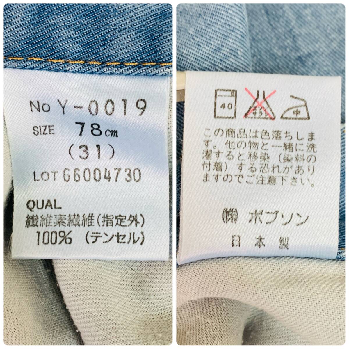 YH2432 BOBSON メンズ 日本製 デニムパンツ Gパン ジーンズ 薄手 ワイド 31サイズ 78 カジュアルスタイル シンプル 万能 USED 古着