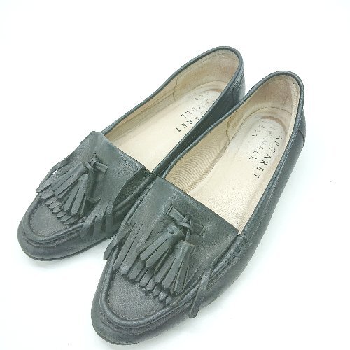 ◇ Θ MARGARET HOWELL idea マーガレット ハウエル アイデア フリンジ装飾 ローファー サイズ23 ブラック レディース E