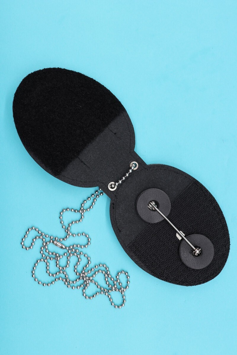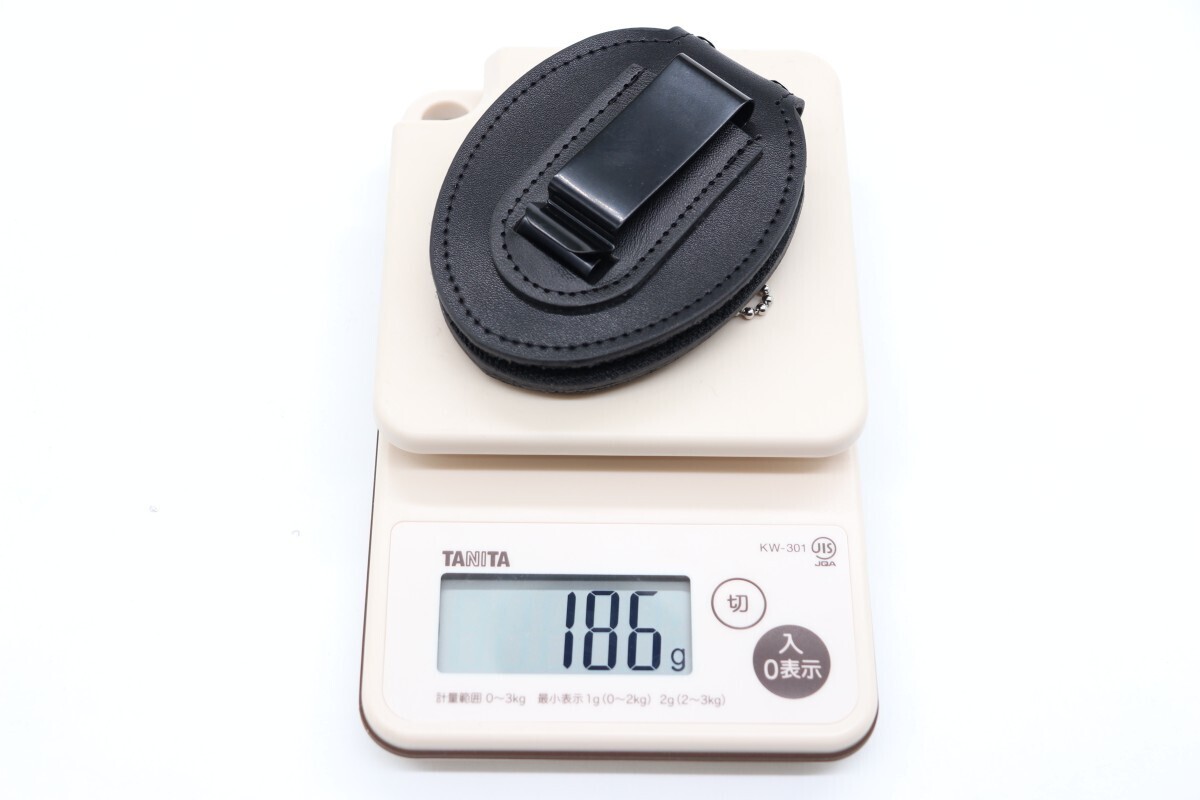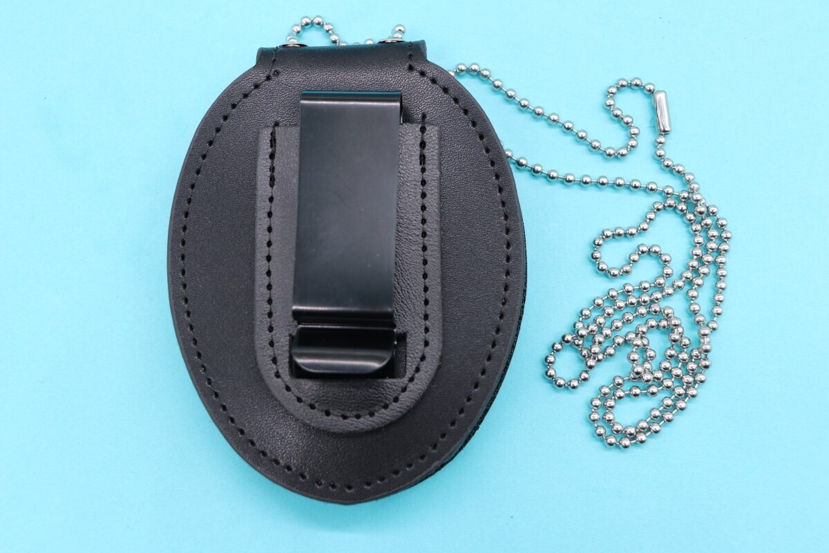 専用のレザーホルダーには首に掛けられるボールチェーンと、裏にはクリップが付属