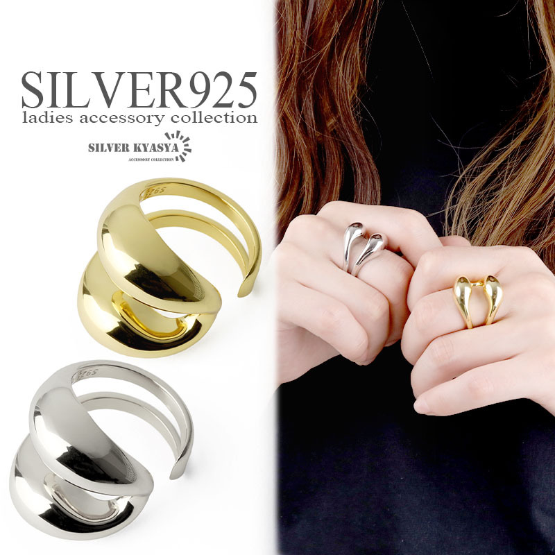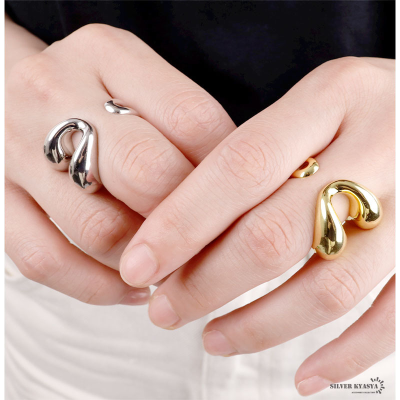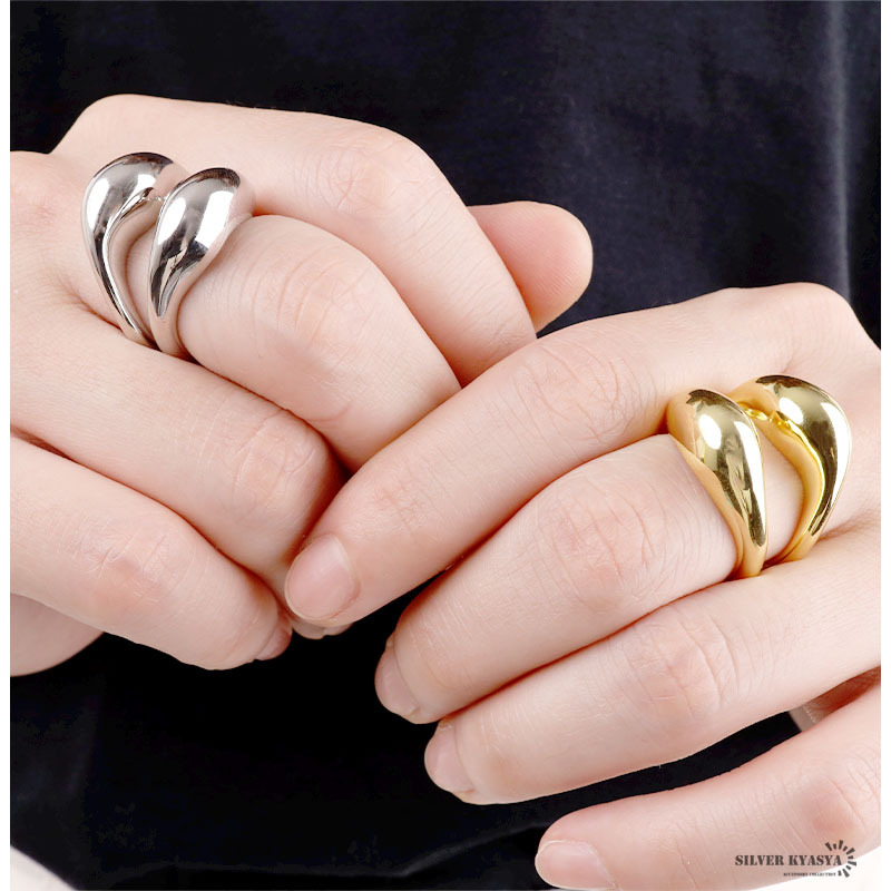 雫のような柔らかい曲線があるリング。装着する位置を変えることで違ったデザインを楽しめます。