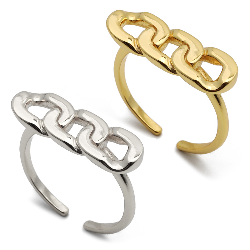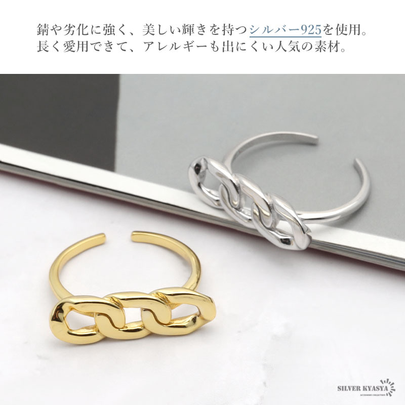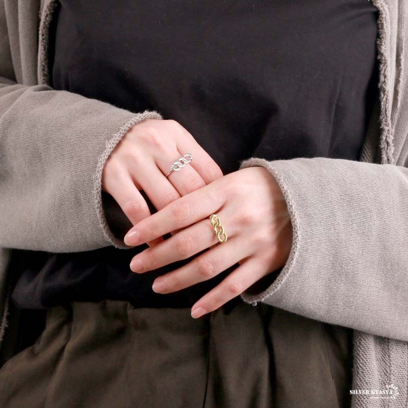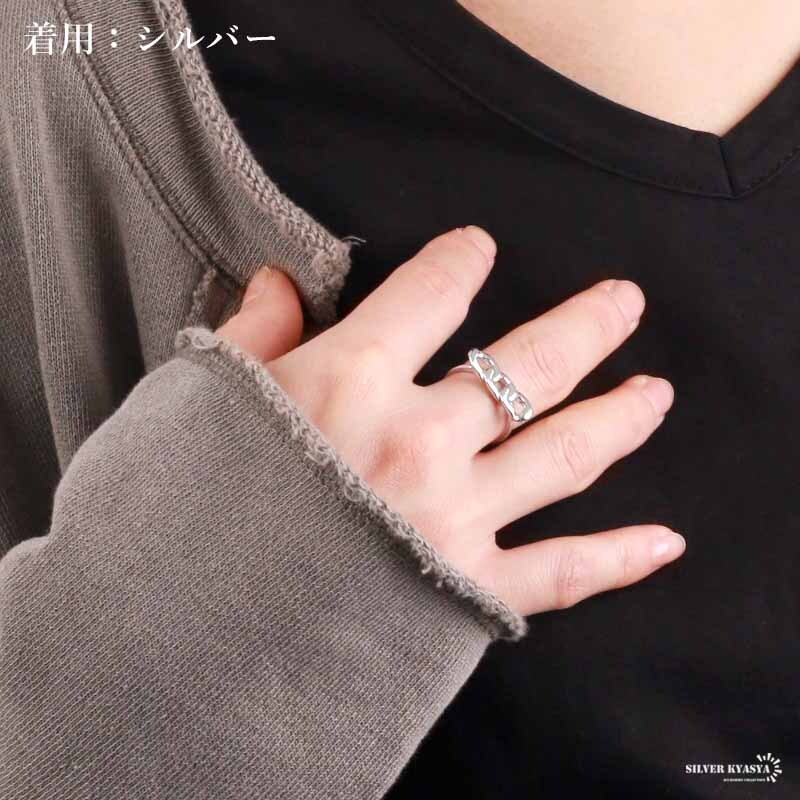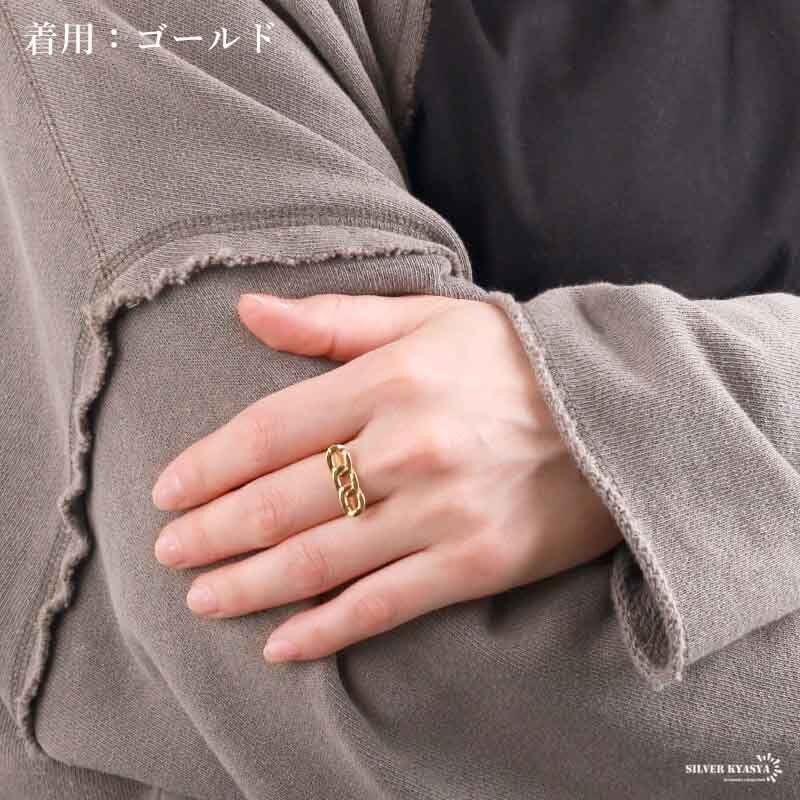 定番人気な喜平チェーンをモチーフに使用した、シンプルな細身リング。女性らしさの中にアクセントを加えてくれます。