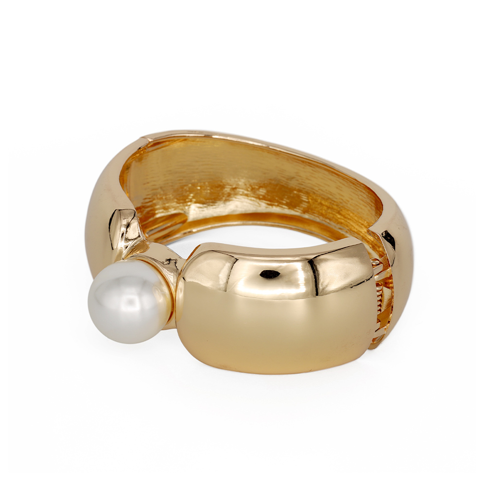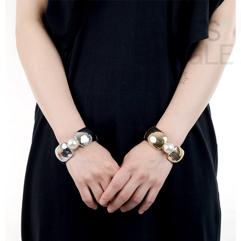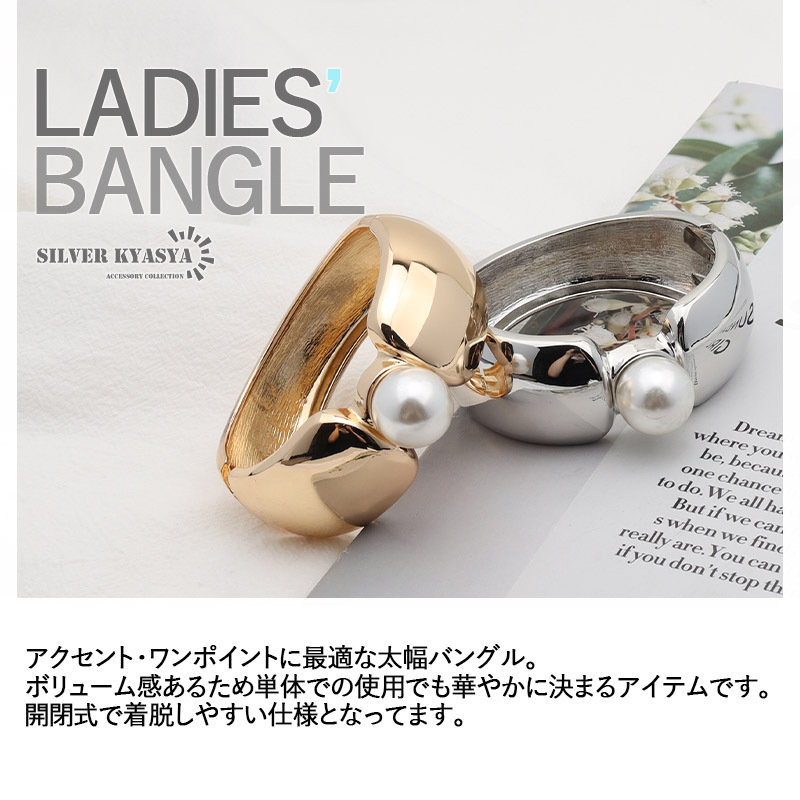 アクセント・ワンポイントに最適な太幅バングル。ボリューム感があるため単体での使用でも華やかに決まるアイテムです。開閉式で着脱しやすい仕様となっています。